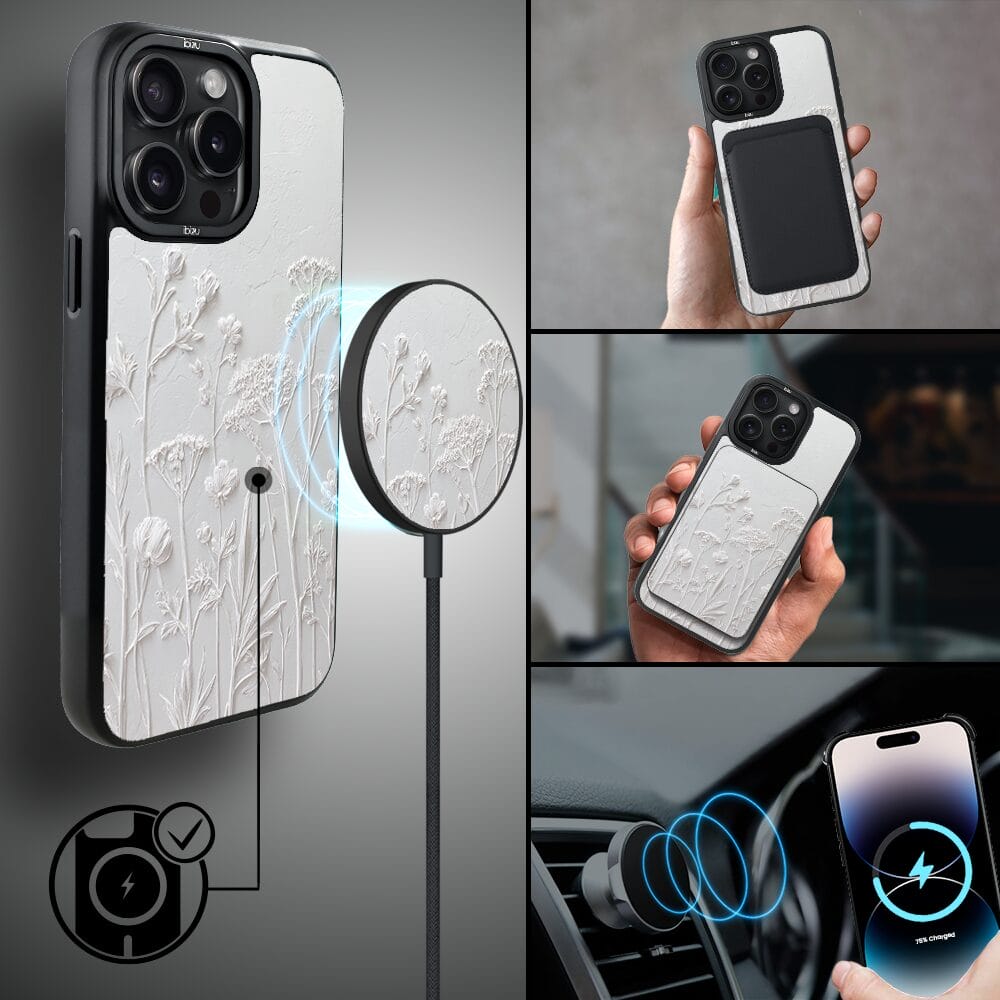 Etui do iPhone 14 Pro Max IBIZU DropGuard Matt z MagSafe, Relief Garden, Suszone kwiaty polne