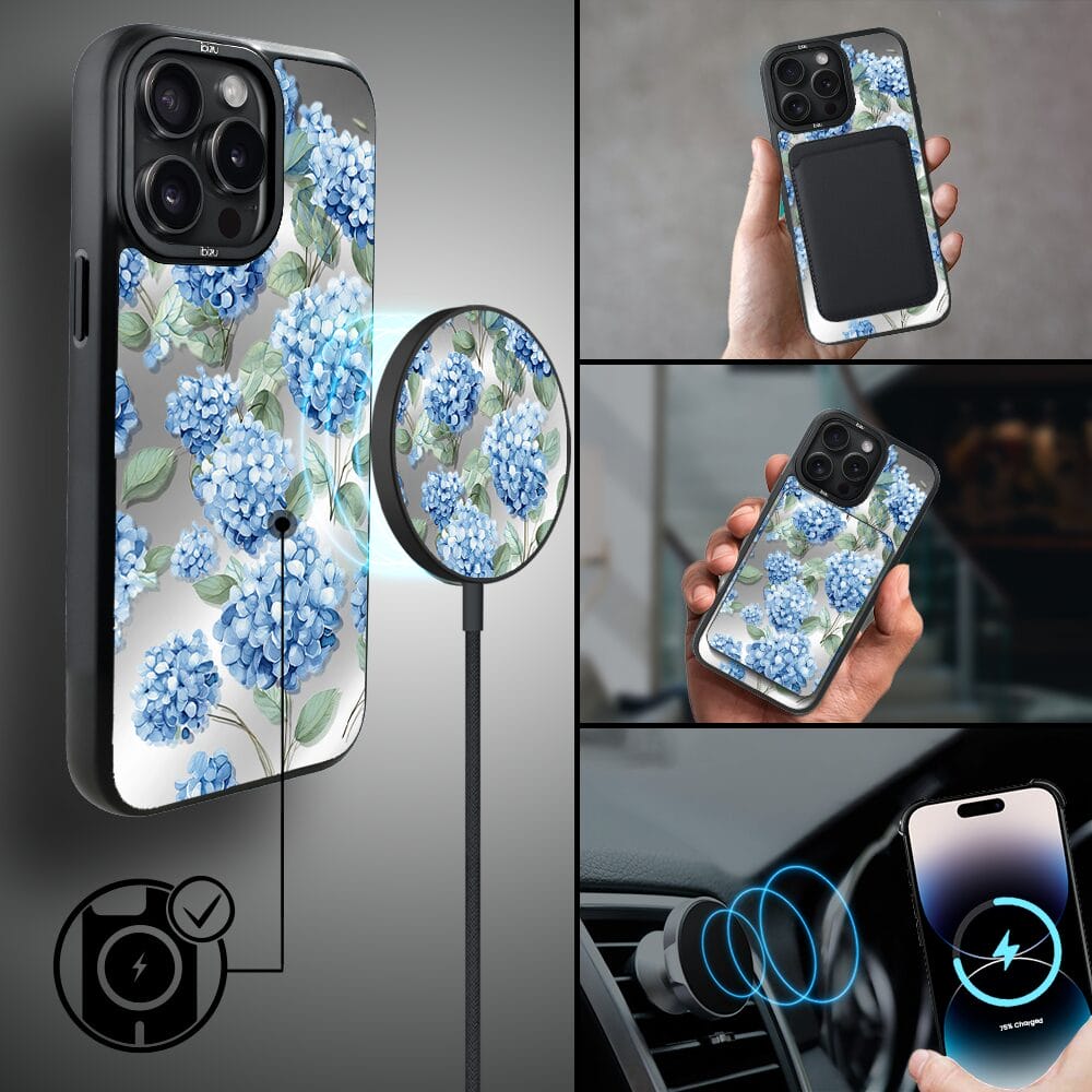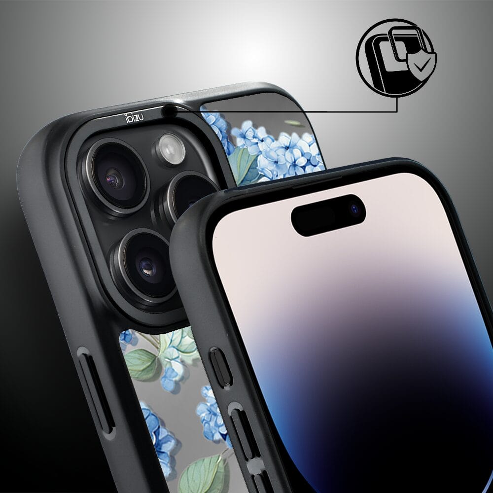 Etui do iPhone 14 Pro Max IBIZU DropGuard Matt z MagSafe, Relief Garden, Szafirowa hortensja