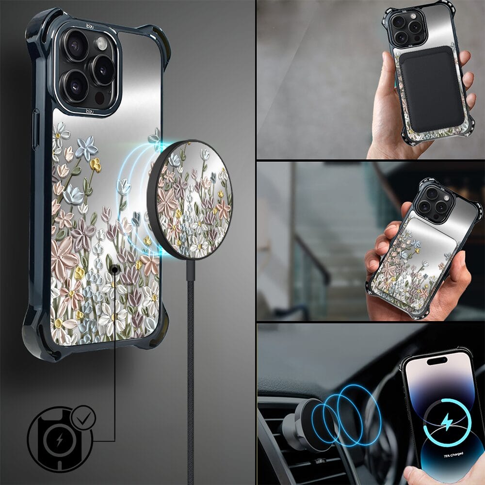 Etui do iPhone 14 Pro Max IBIZU DropGuard Ultra z MagSafe, Relief Garden, Wiosenna łąka