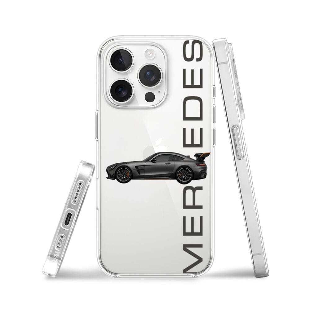 Etui do iPhone 14 Pro Max przeźroczyste, silikonowe Flexi, Szybkie Auta, Stalowe AMG-GT