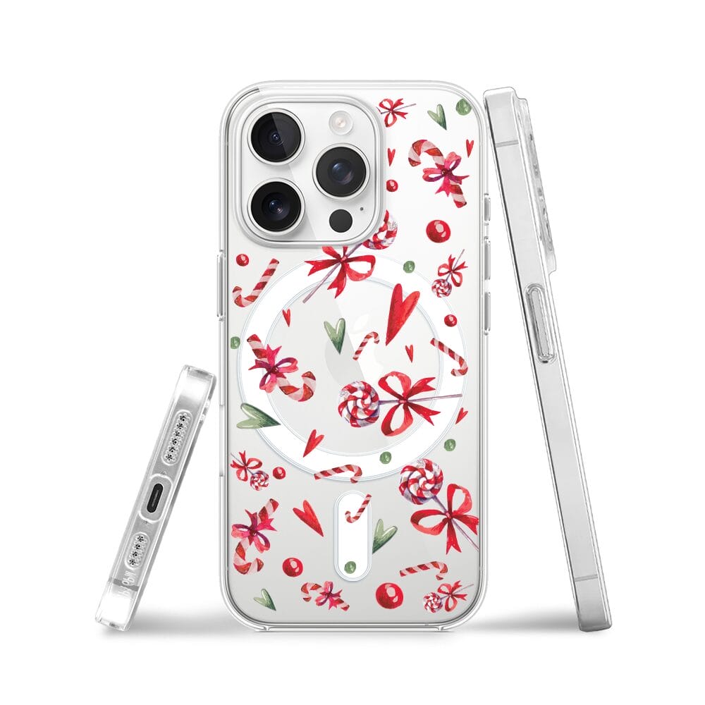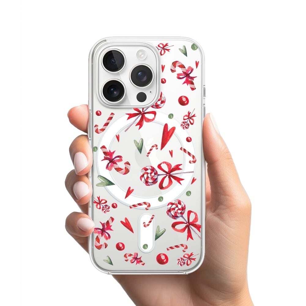 Etui do iPhone 14 Pro Max z MagSafe przeźroczyste, silikonowe Flexi, Cukierki świąteczne