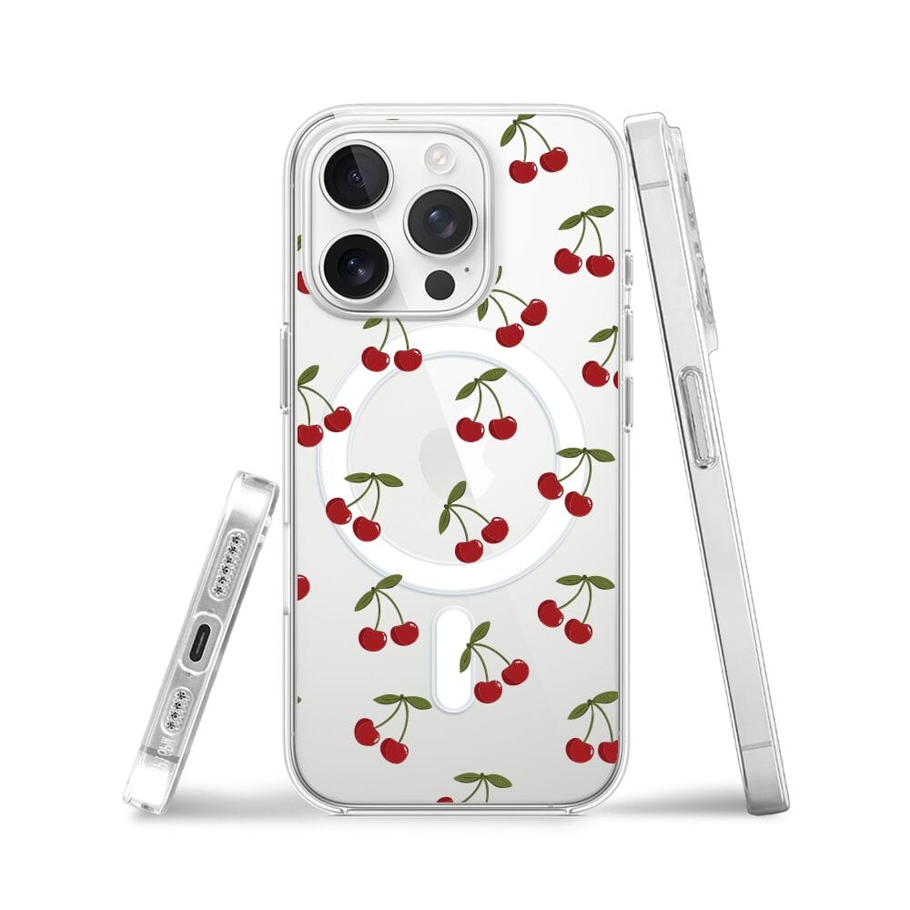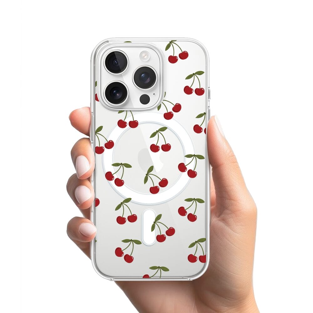 Etui do iPhone 14 Pro Max z MagSafe przeźroczyste, silikonowe Flexi, Mini Patterns, Wiśnie