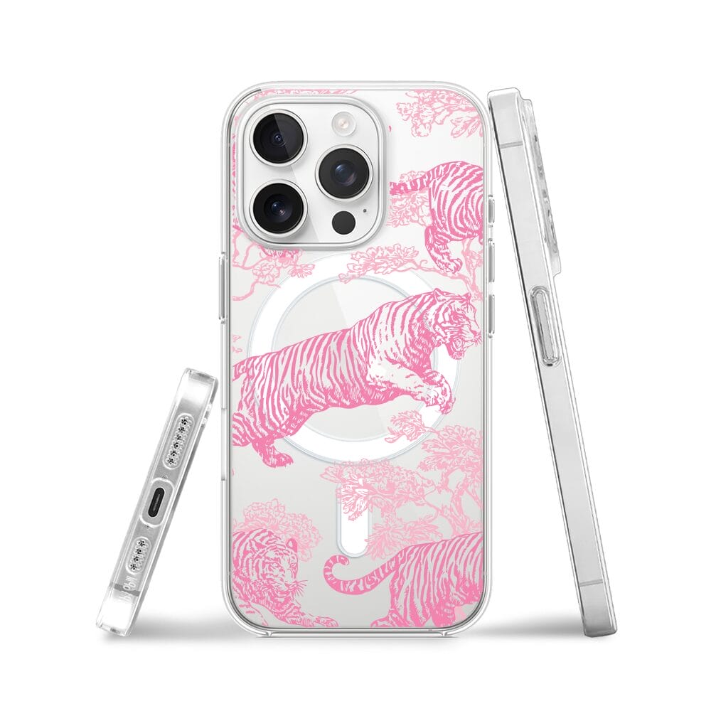 Etui do iPhone 14 Pro Max z MagSafe przeźroczyste, silikonowe Flexi, Mystic, Różowe tygrysy