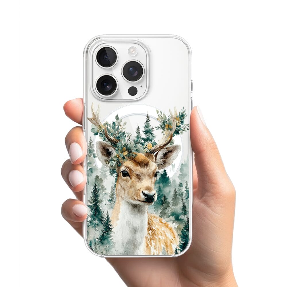 Etui do iPhone 14 Pro Max z MagSafe przeźroczyste, silikonowe Flexi, Przytulne święta, Leśny jelonek