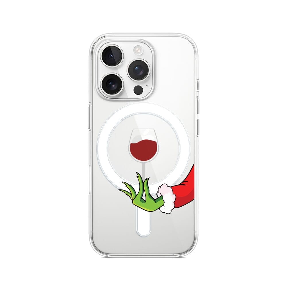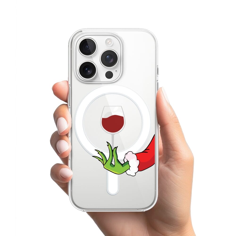 Etui do iPhone 14 Pro Max z MagSafe przeźroczyste, silikonowe Flexi, Zielony psotnik z lampką wina