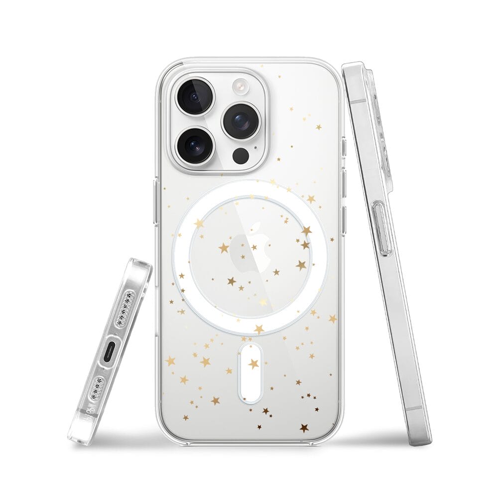 Etui do iPhone 14 Pro Max z MagSafe przeźroczyste, silikonowe Flexi, Zimowa magia, Złote gwiazdki