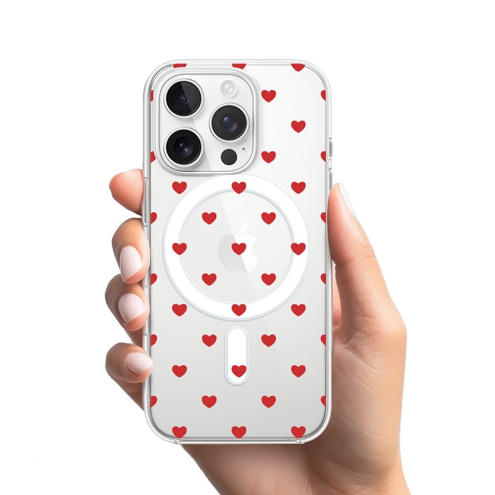 Etui do iPhone 14 Pro z MagSafe przeźroczyste, silikonowe Flexi, Mini Patterns, Serduszka