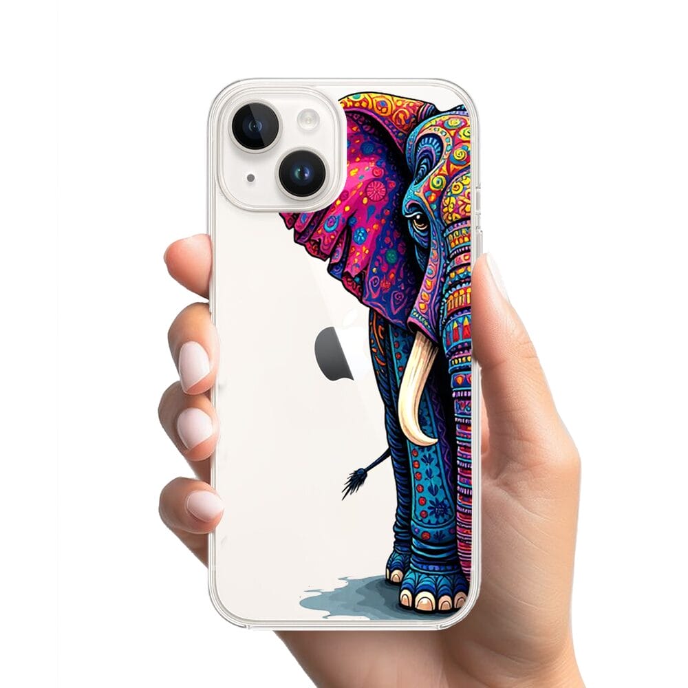 Etui do iPhone 14 przeźroczyste, silikonowe Flexi, Dzika Mandala, Słoń