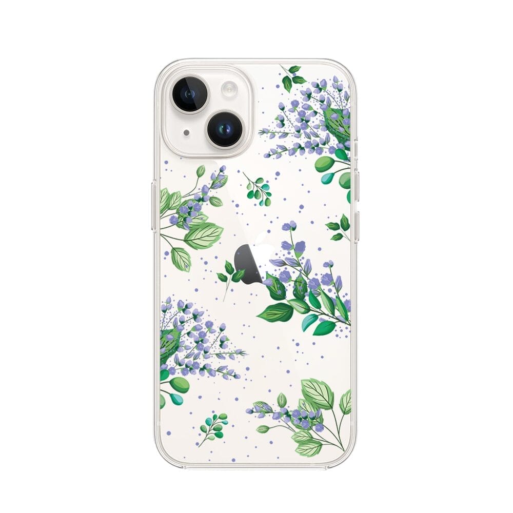 Etui do iPhone 14 przeźroczyste, silikonowe Flexi, fioletowe kwiatki