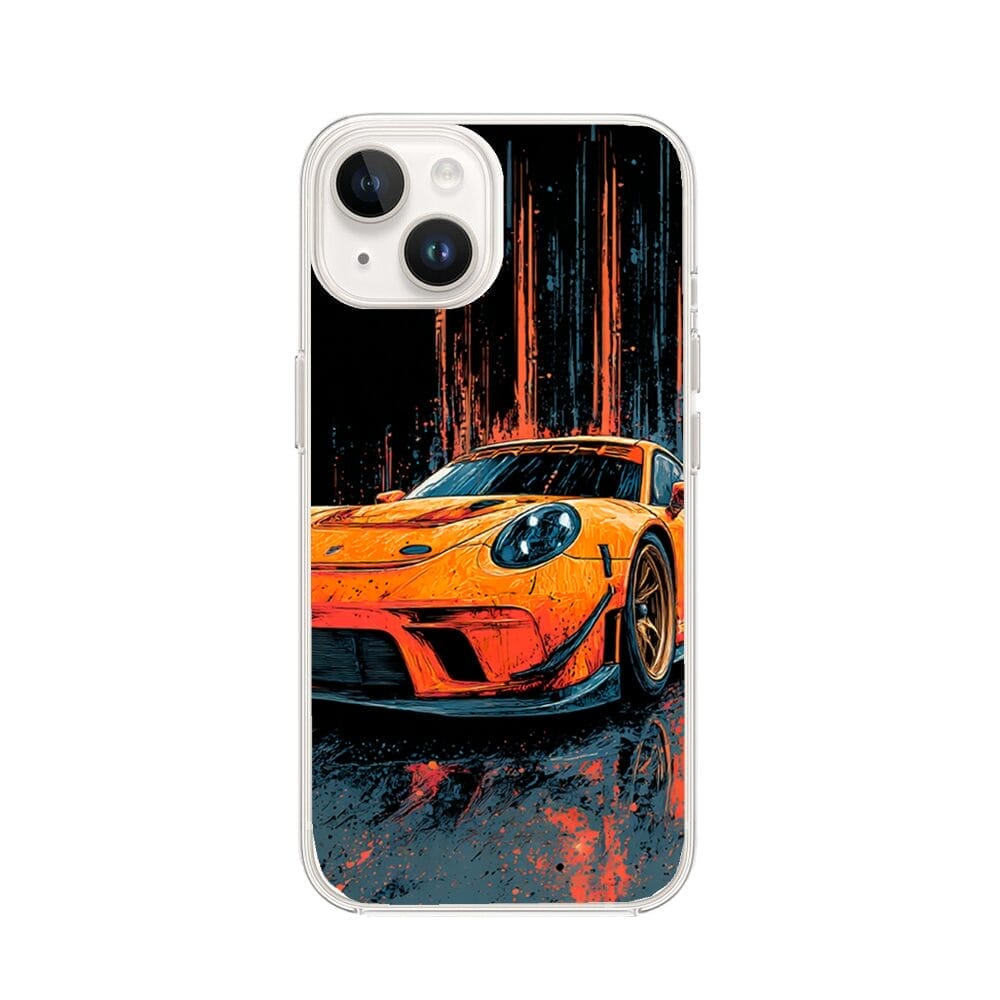 Etui do iPhone 14 przeźroczyste, silikonowe Flexi, Szybkie Auta, Pomarańczowa 911