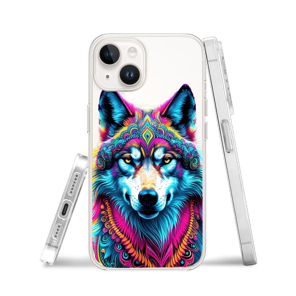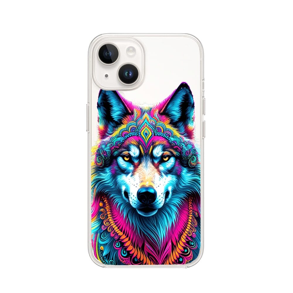 Etui do iPhone 14 z MagSafe przeźroczyste, silikonowe Flexi, Dzika Mandala, Wilk