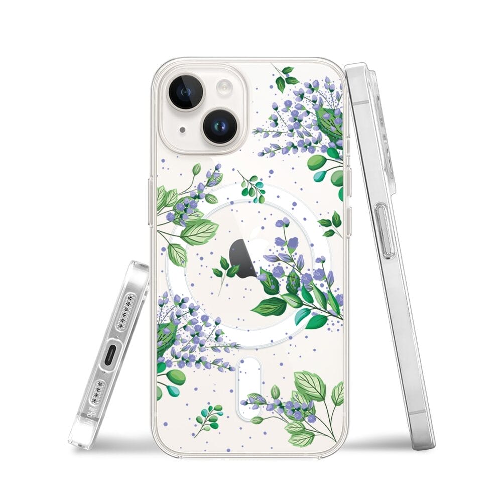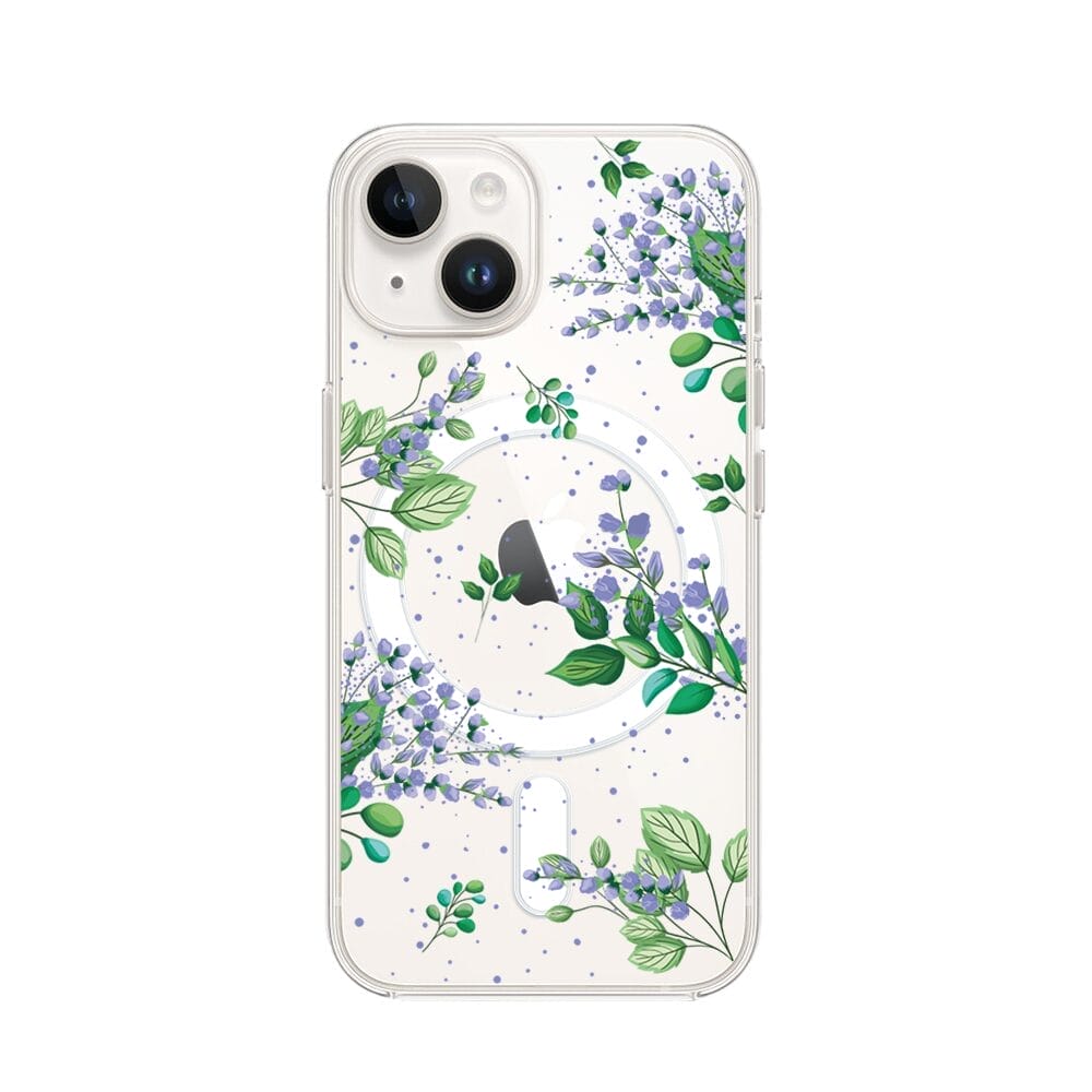 Etui do iPhone 14 z MagSafe przeźroczyste, silikonowe Flexi, fioletowe kwiatki