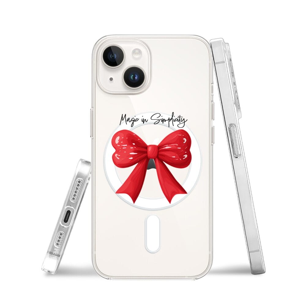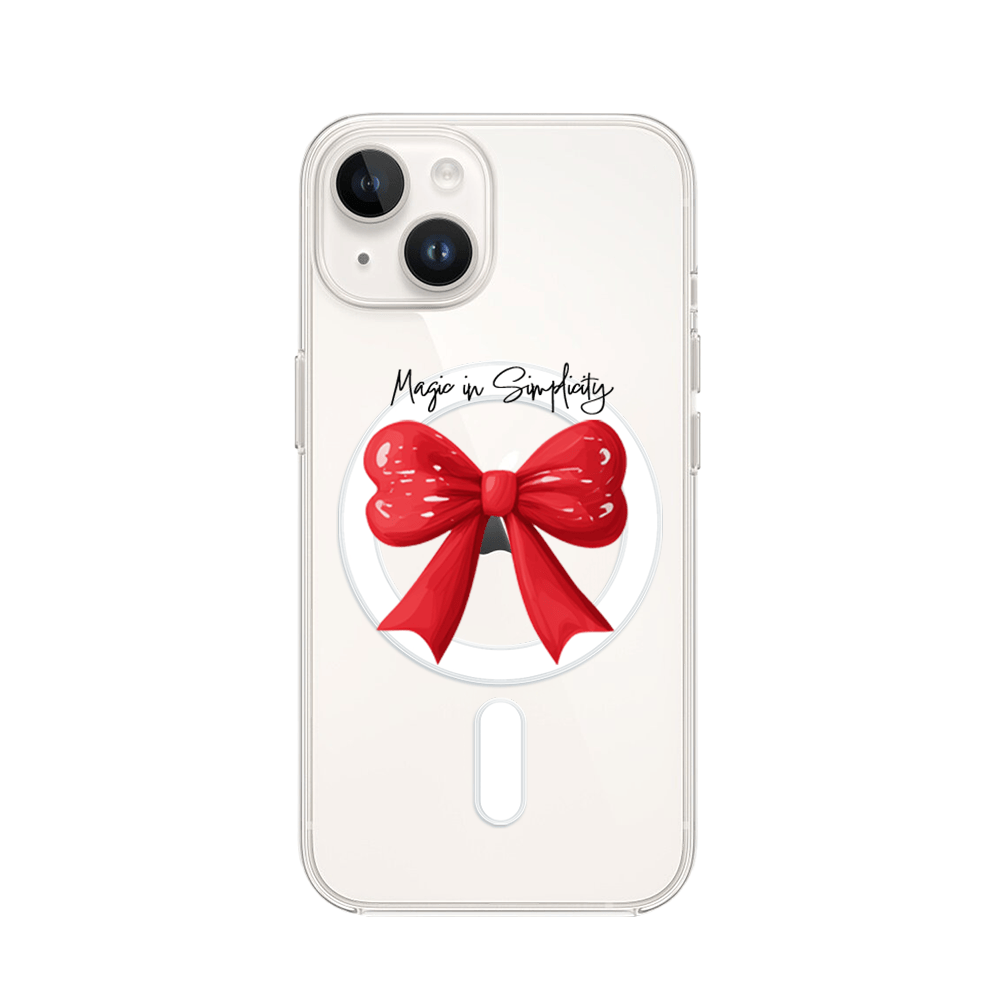 Etui do iPhone 14 z MagSafe przeźroczyste, silikonowe Flexi, Przytulne święta, Czerwona kokarda