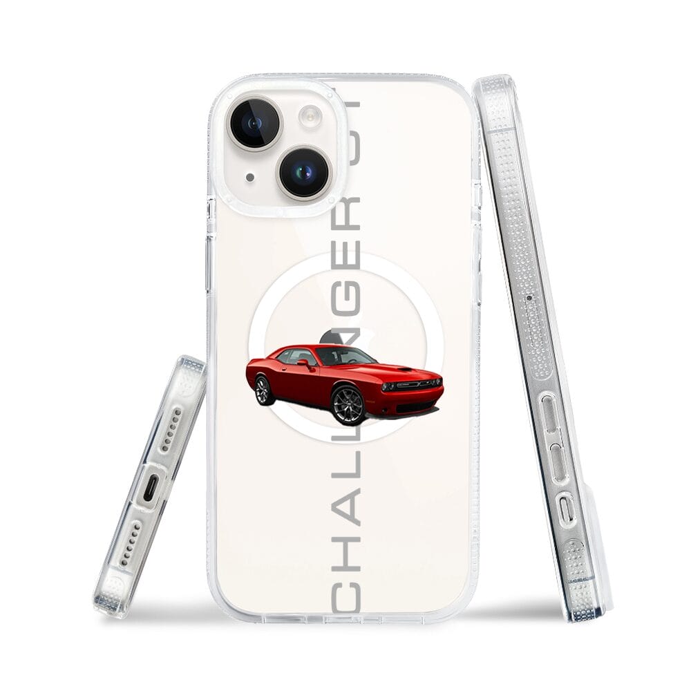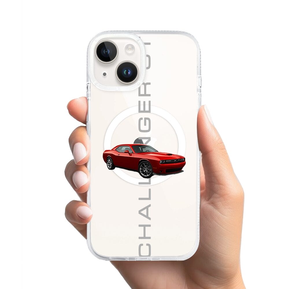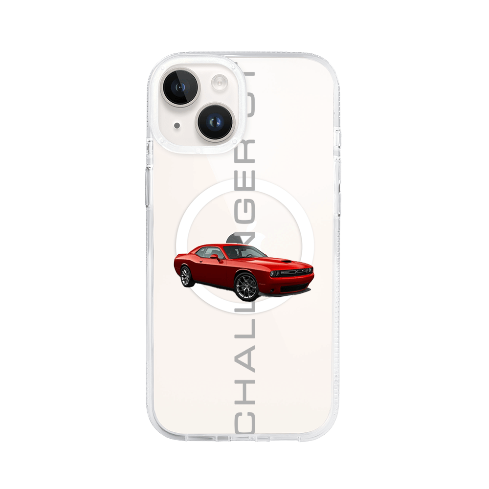 Etui do iPhone 14 z MagSafe przeźroczyste, silikonowe Flexi, Szybkie Auta, czerwony Challenger GT