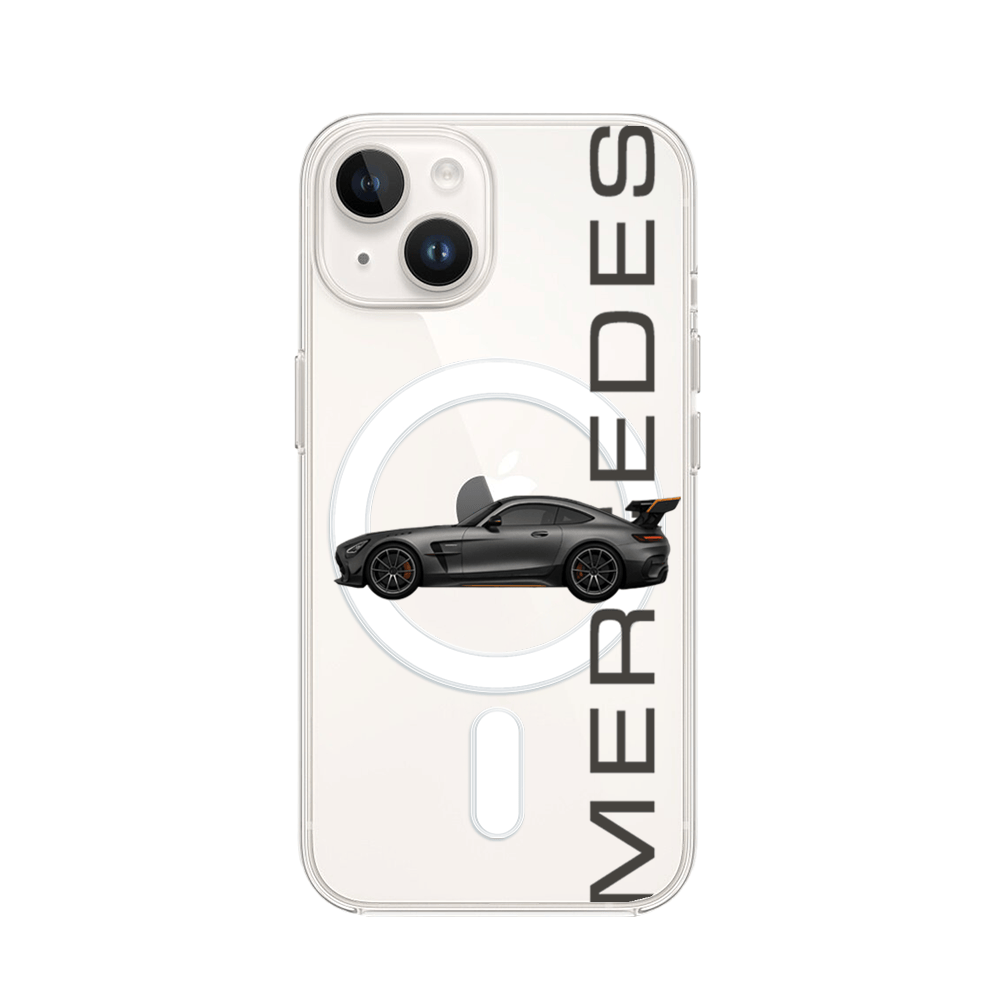 Etui do iPhone 14 z MagSafe przeźroczyste, silikonowe Flexi, Szybkie Auta, Stalowe AMG-GT