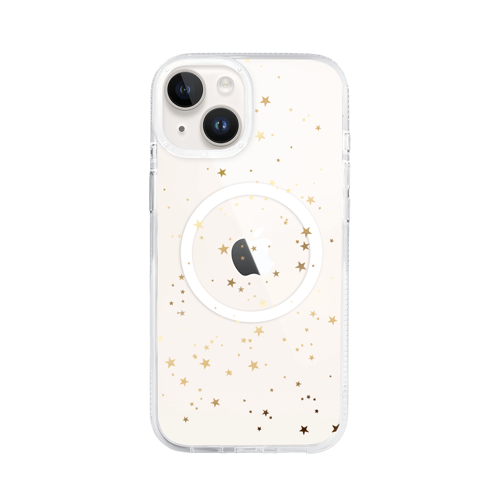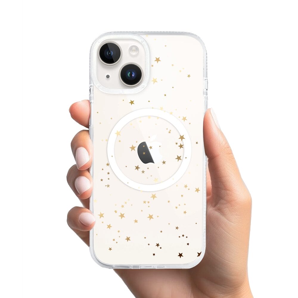 Etui do iPhone 14 z MagSafe przeźroczyste, silikonowe Flexi, Złote gwiazdki