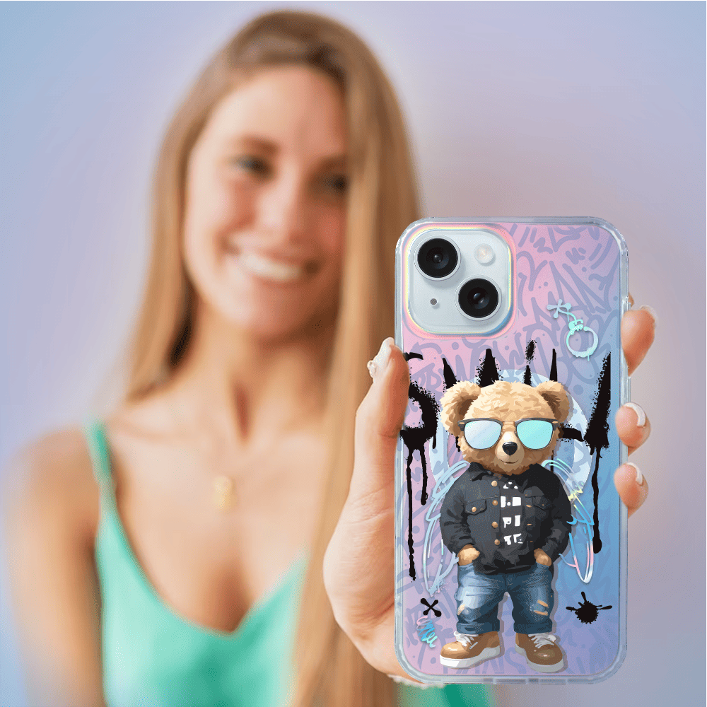 Etui do iPhone 15 IBIZU California Sunset z MagSafe, zmieniające kolor, Graffiti Boy, artystyczny miś