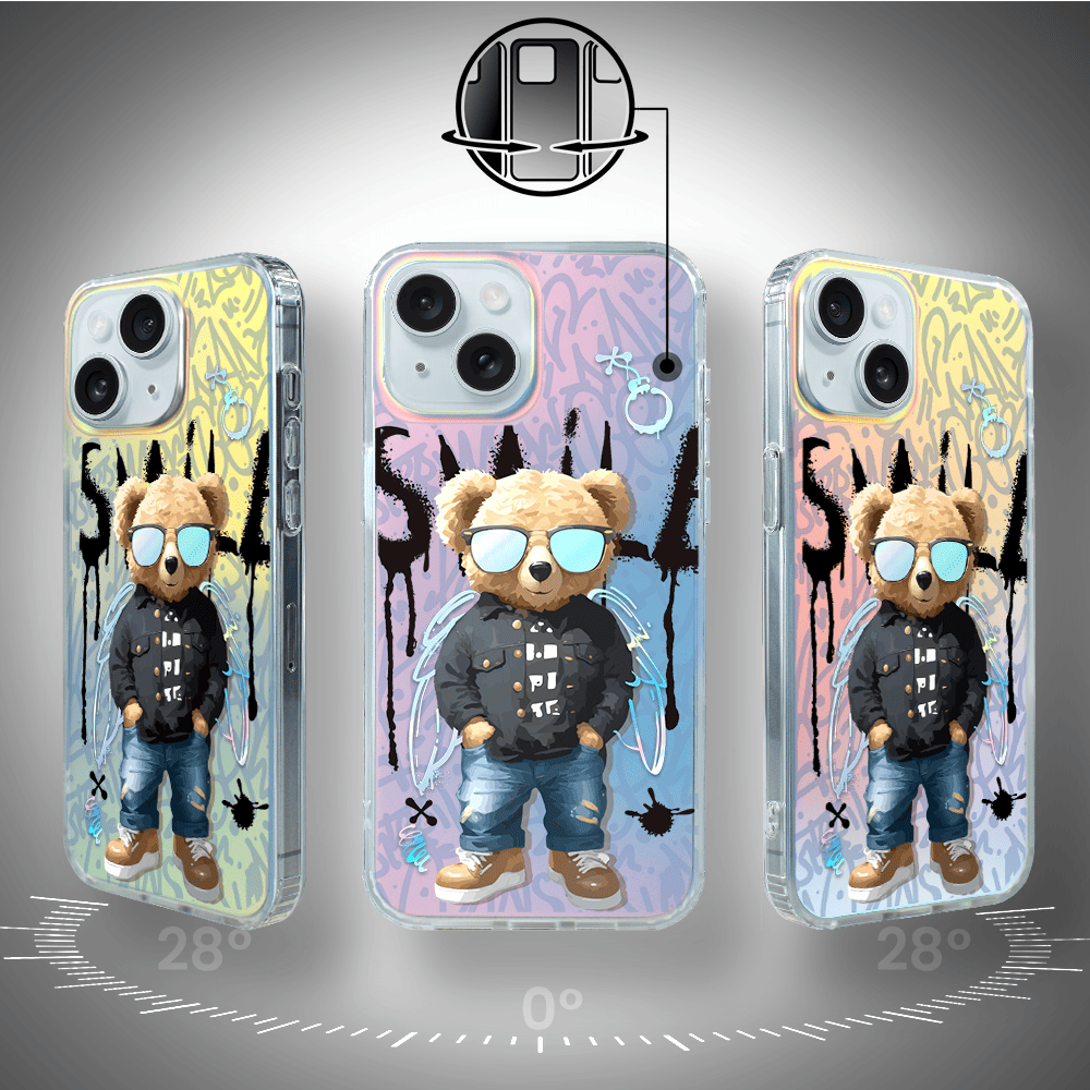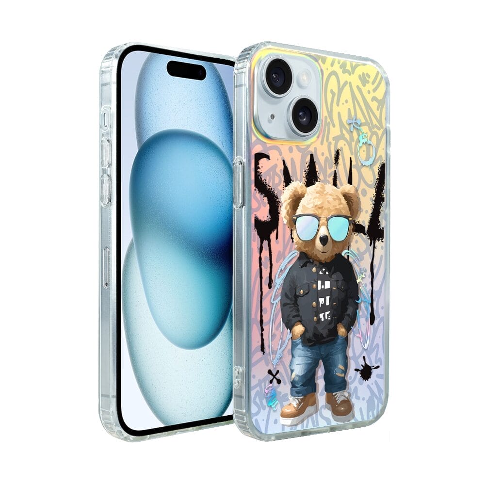 Etui do iPhone 15 IBIZU California Sunset, zmieniające kolor, Graffiti Boy, artystyczny miś