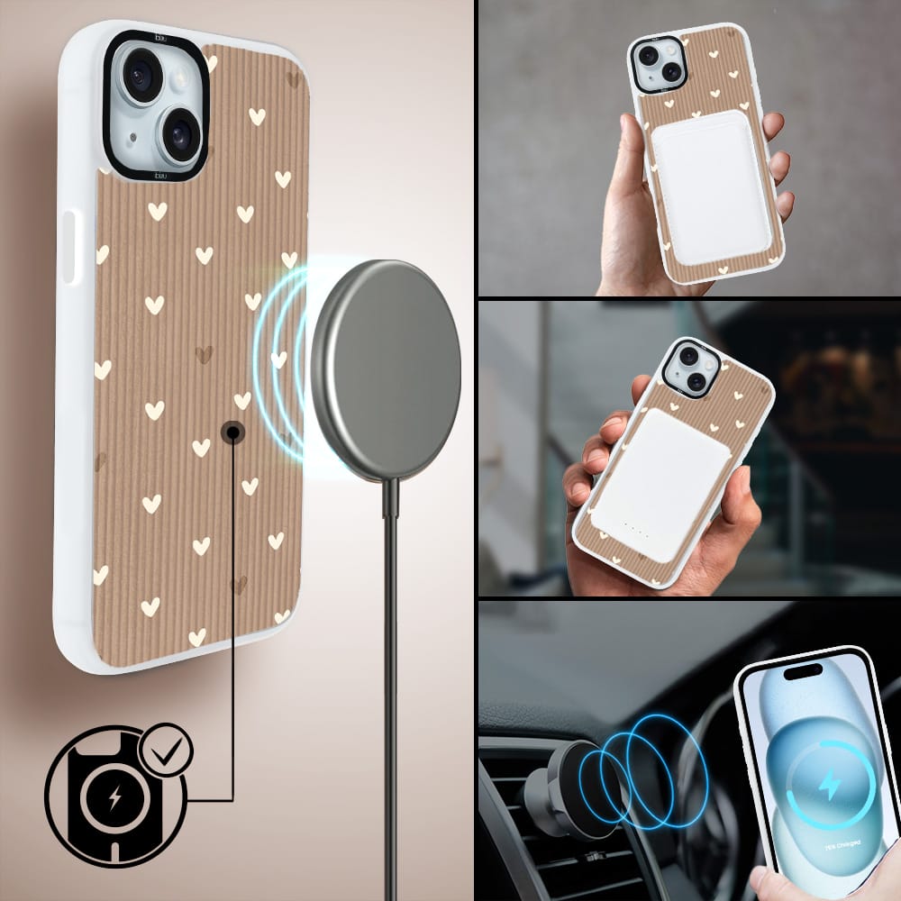 Etui do iPhone 15 IBIZU DropGuard Matt z MagSafe, Boho, Pudrowe serca
