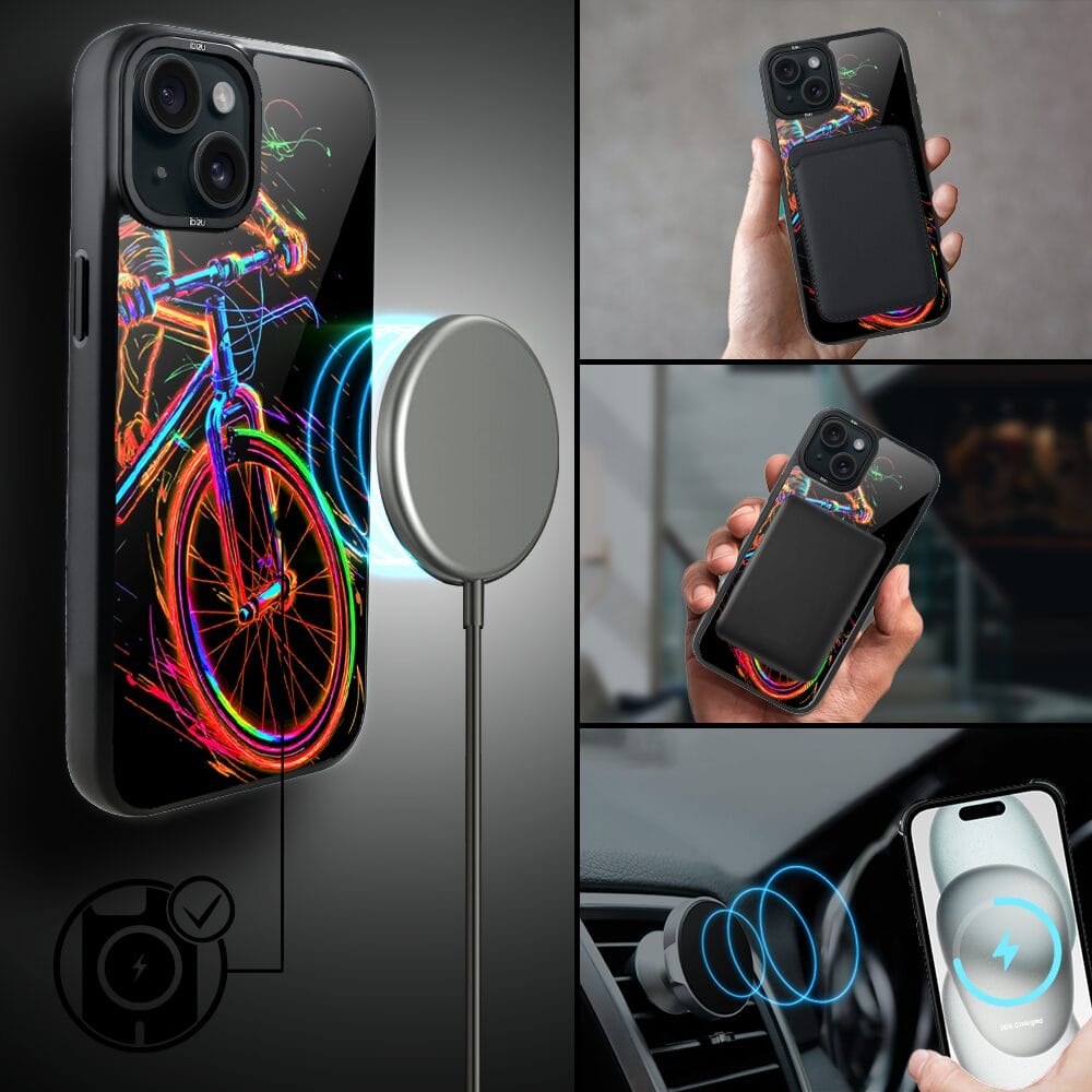 Etui do iPhone 15 IBIZU DropGuard Matt z MagSafe, #ElectroMove, Rowerowa wibracja