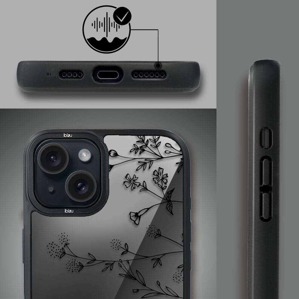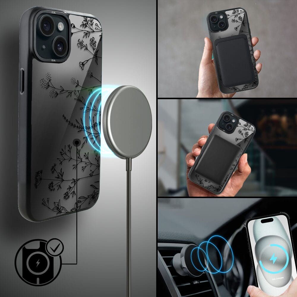 Etui do iPhone 15 IBIZU DropGuard Matt z MagSafe, Midnight, Dotyk kwiatów