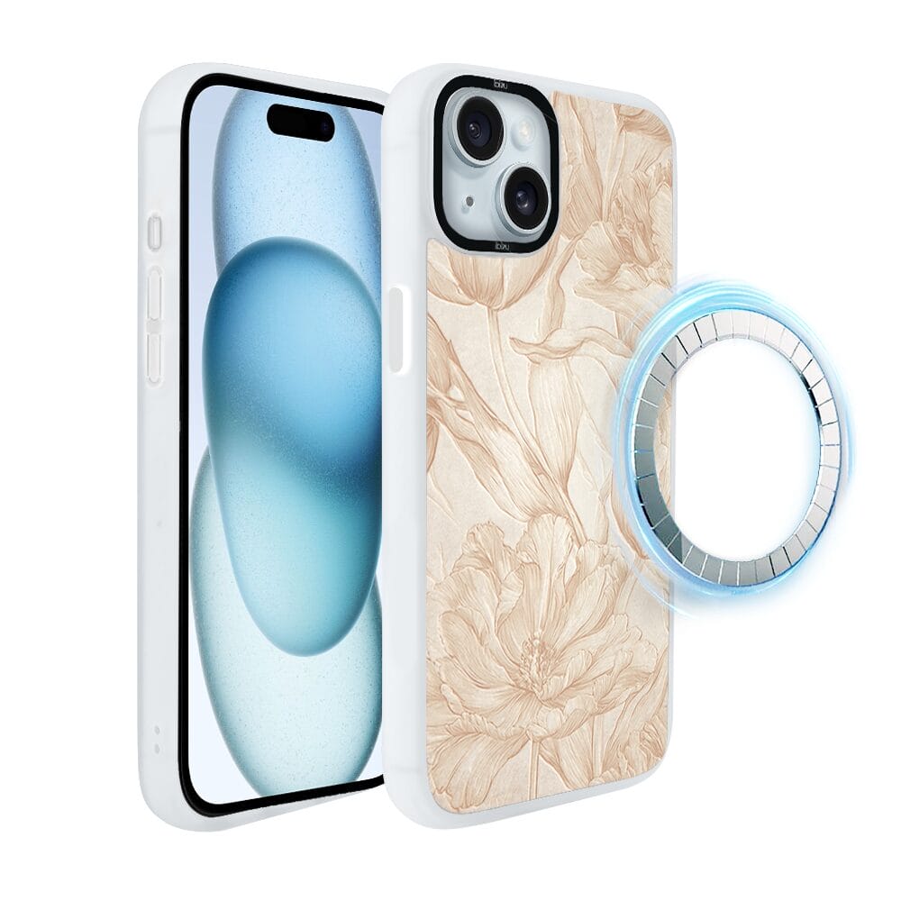 Etui do iPhone 15 IBIZU DropGuard Matt z MagSafe, Relief Garden, Botaniczny biskwit, białe