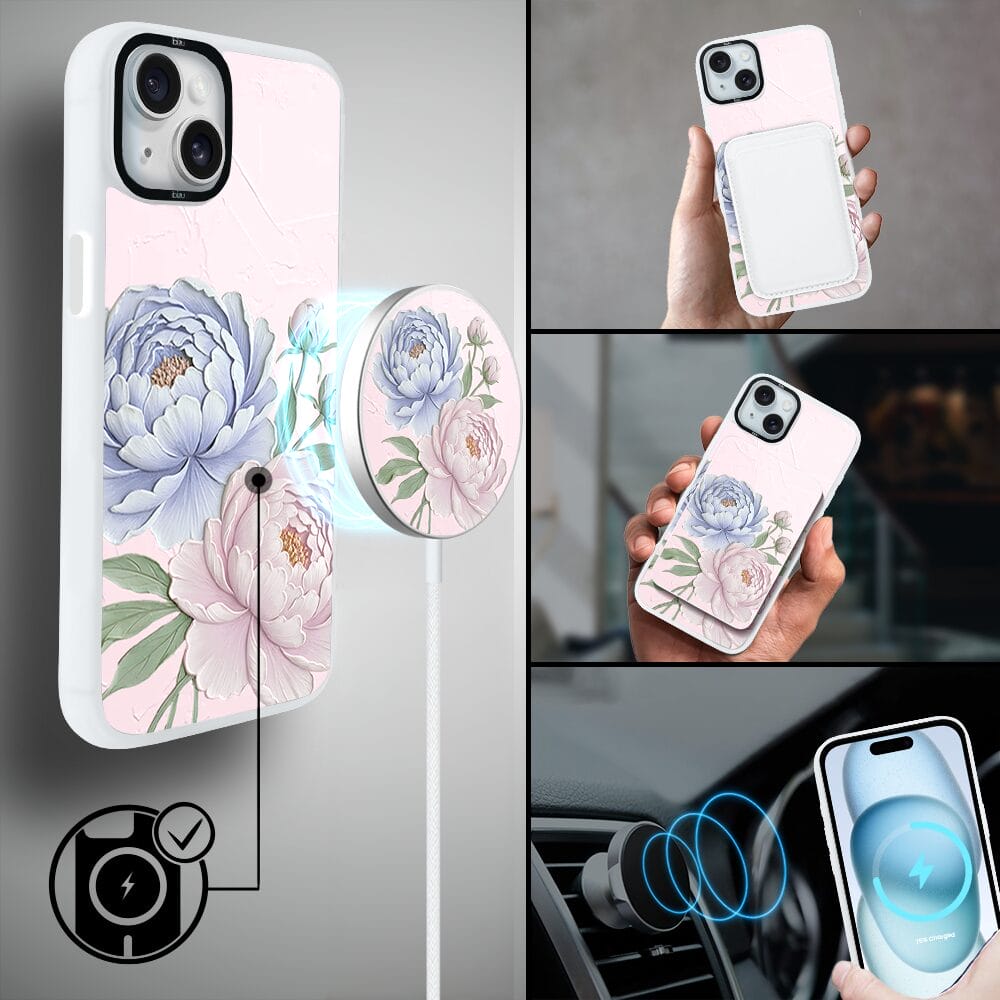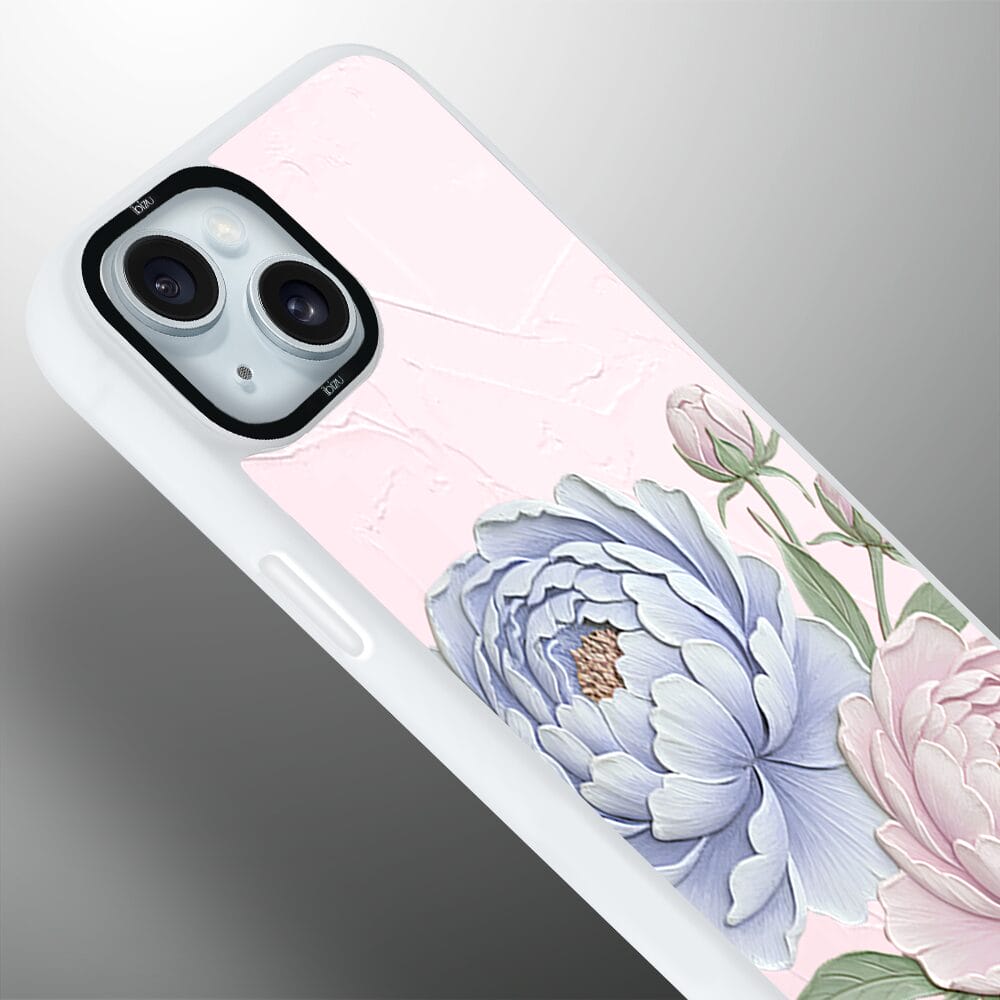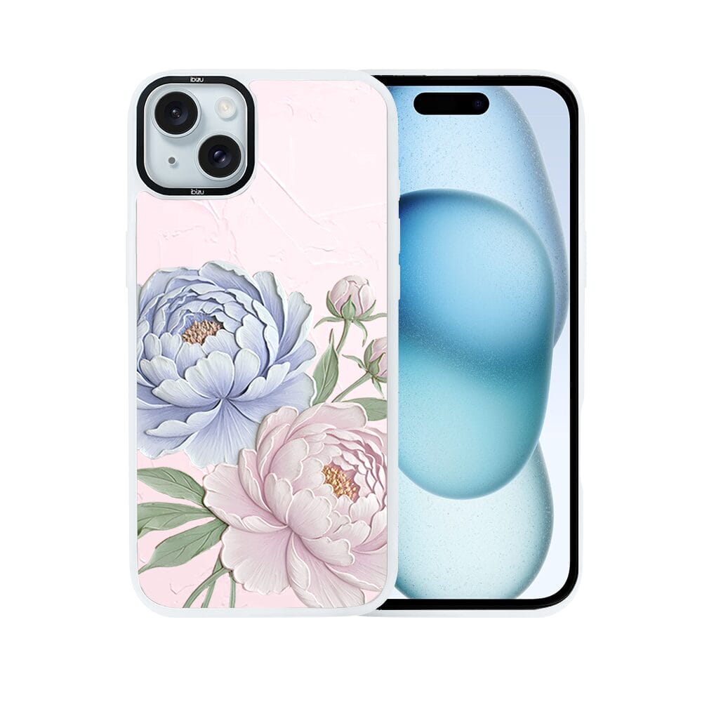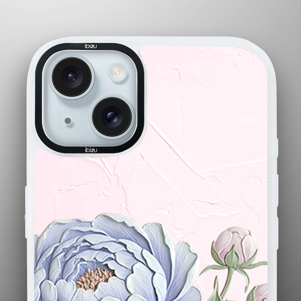 Etui do iPhone 15 IBIZU DropGuard Matt z MagSafe, Relief Garden, Piwoniowy róż, białe