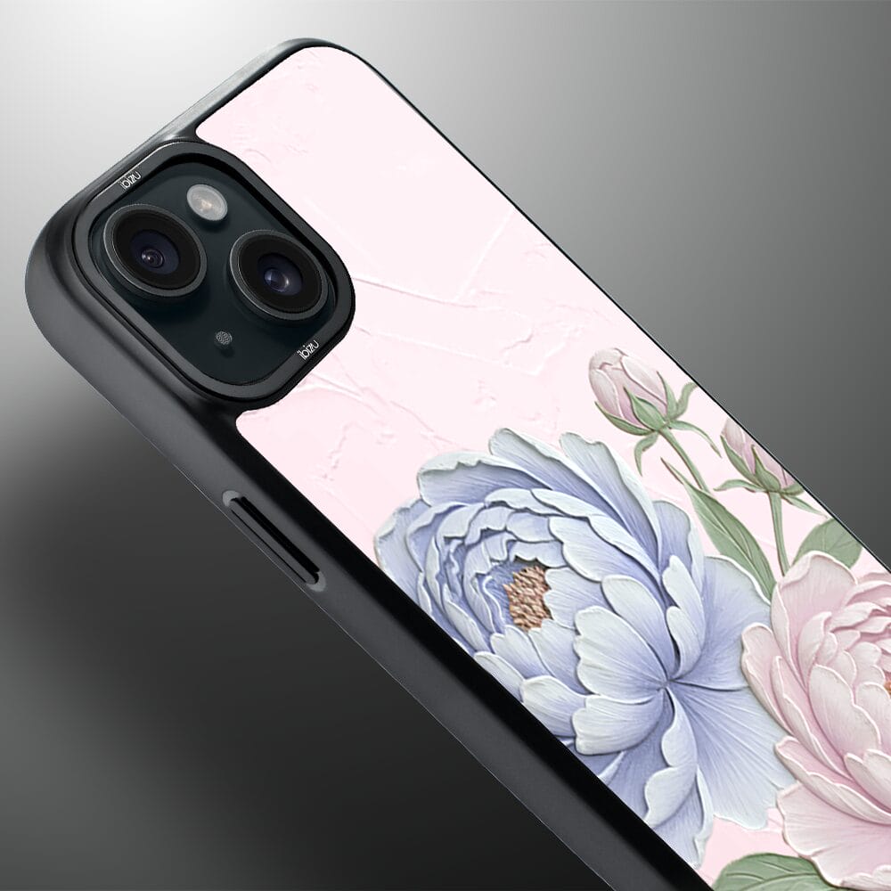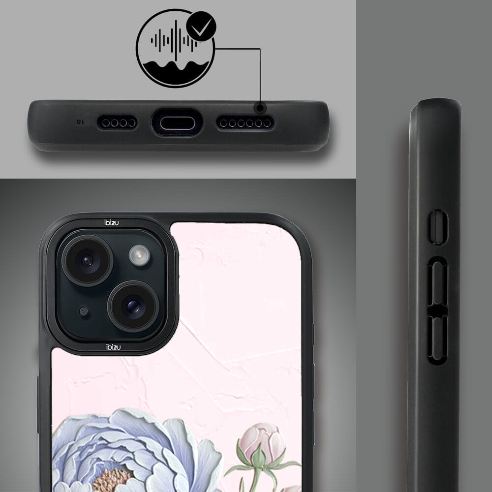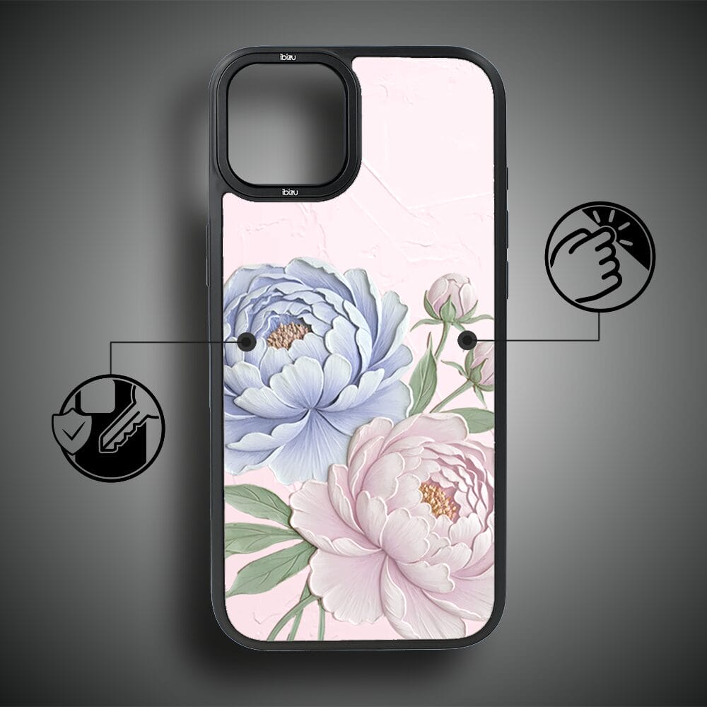 Etui do iPhone 15 IBIZU DropGuard Matt z MagSafe, Relief Garden, Piwoniowy róż