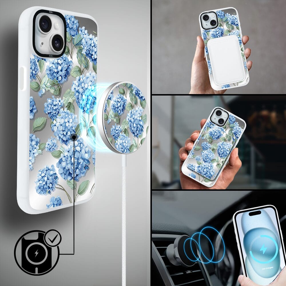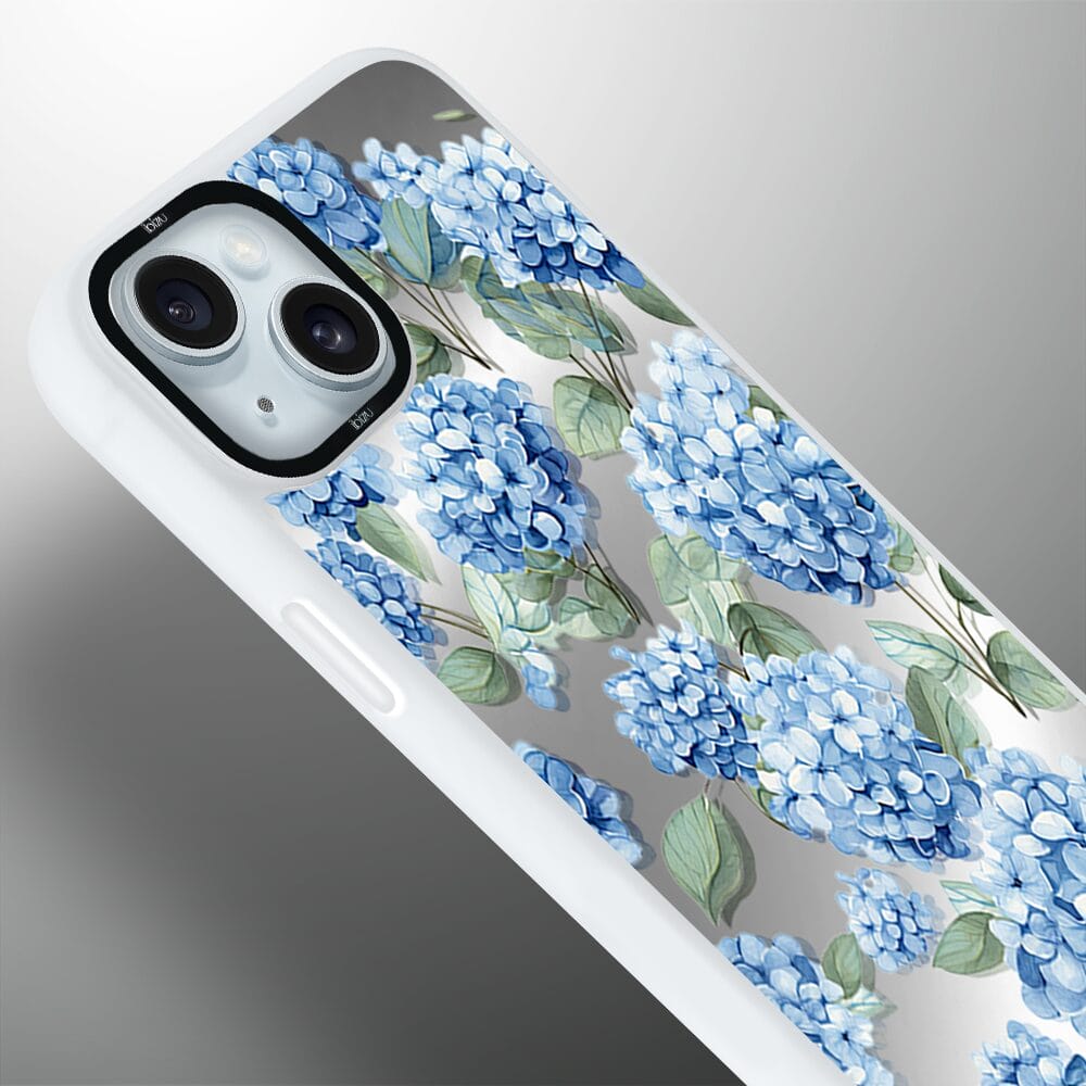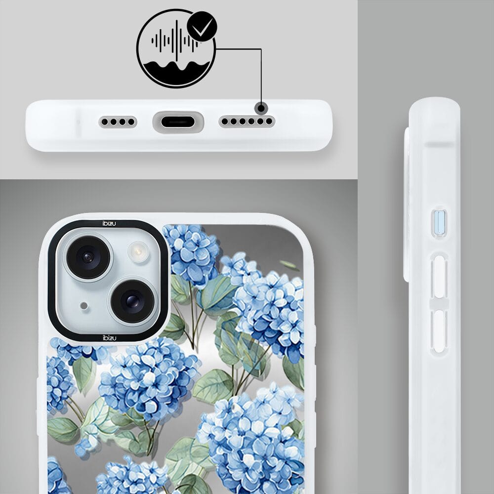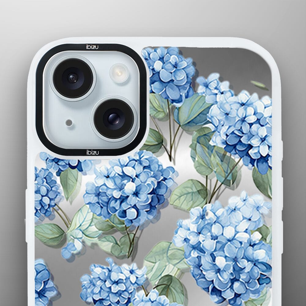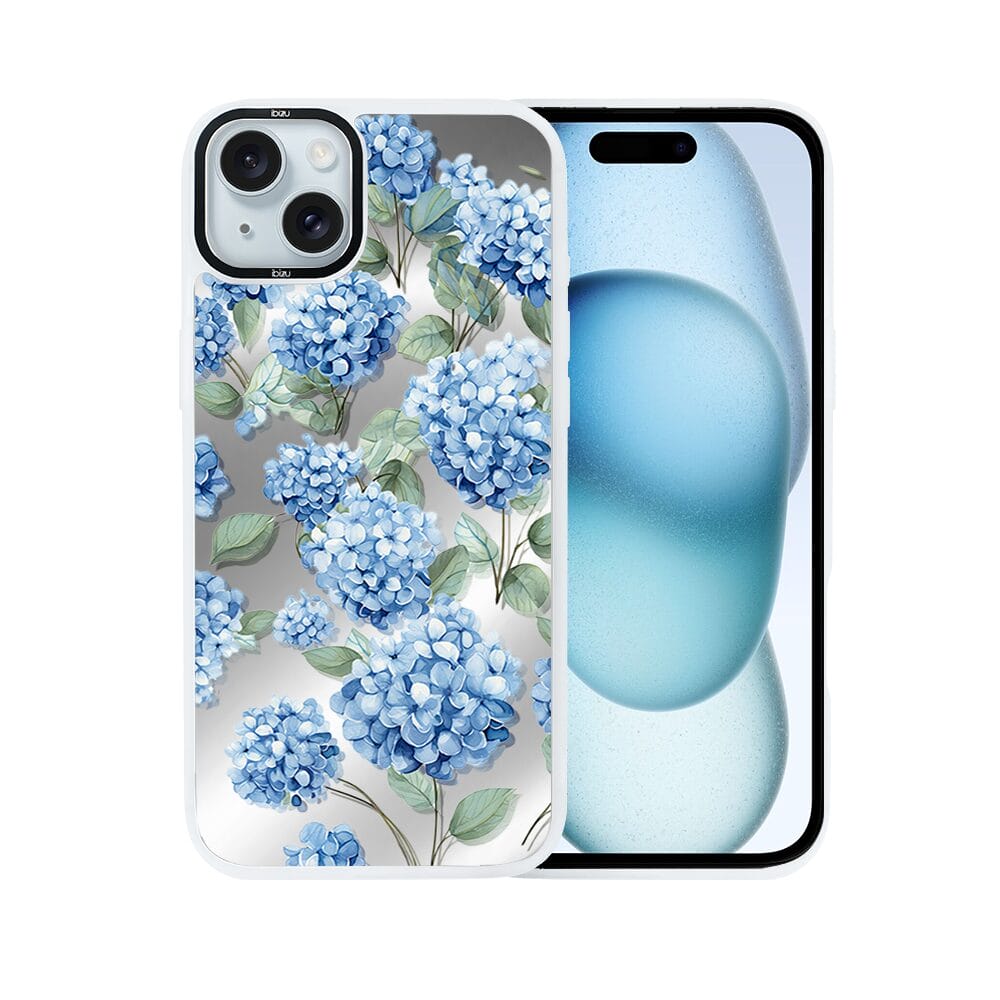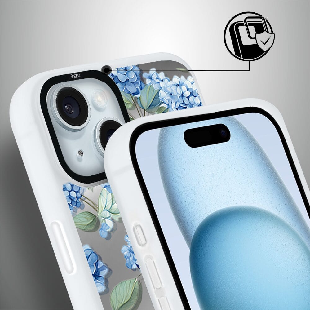 Etui do iPhone 15 IBIZU DropGuard Matt z MagSafe, Relief Garden, Szafirowa hortensja, białe