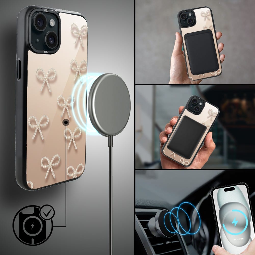 Etui do iPhone 15 IBIZU DropGuard Matt z MagSafe, Zimowa magia, Perłowe kokardki
