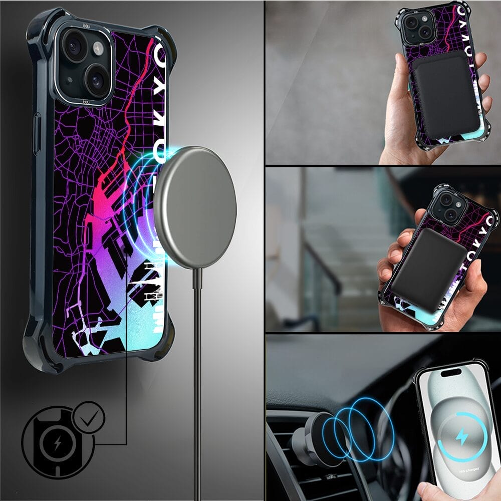 Etui do iPhone 15 IBIZU DropGuard Ultra z MagSafe, mapy świata, Tokyo