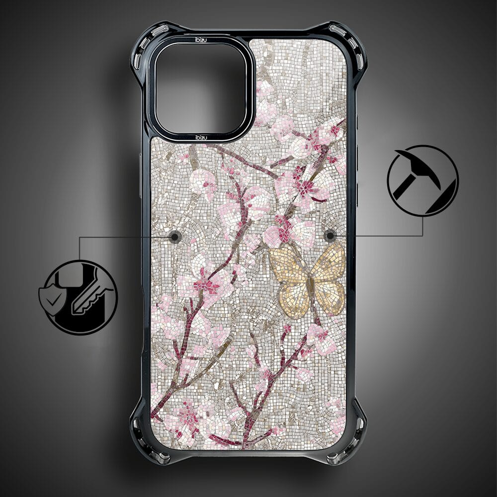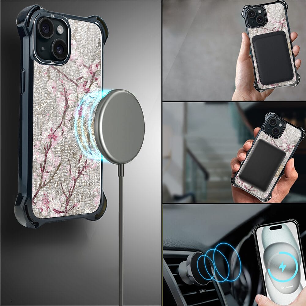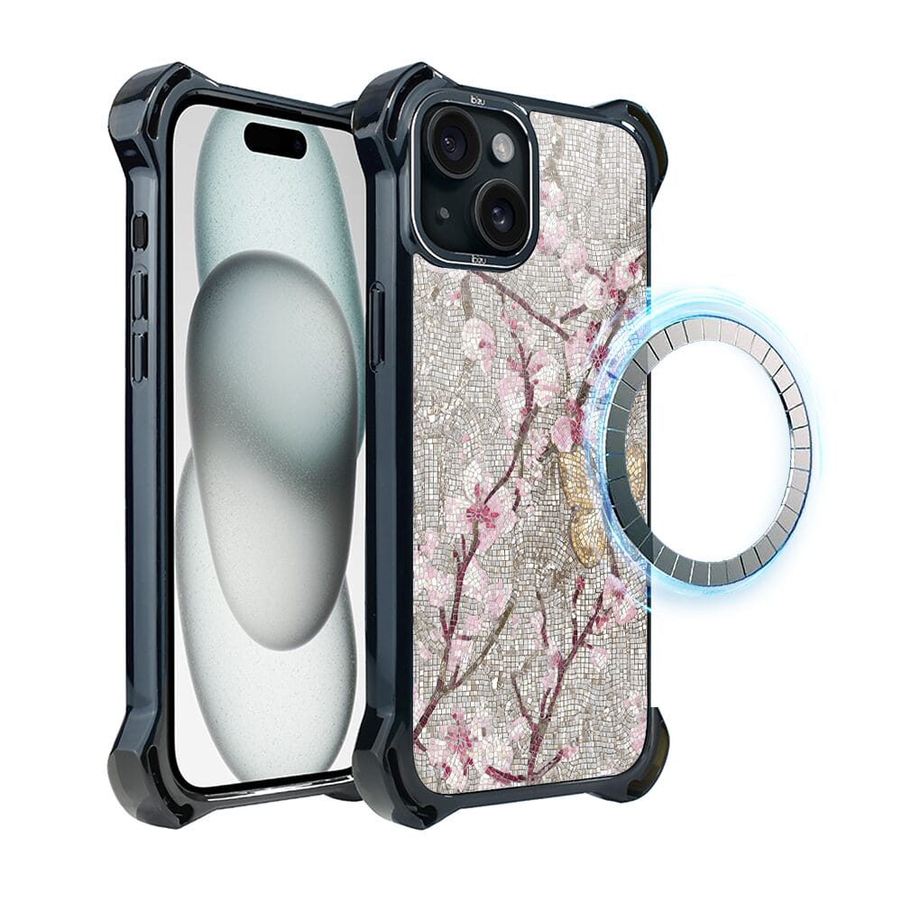 Etui do iPhone 15 IBIZU DropGuard Ultra z MagSafe, Modern Classics, Mozaika kwitnącej wiśni