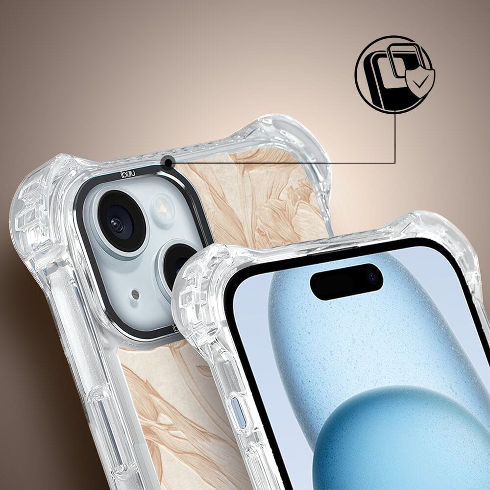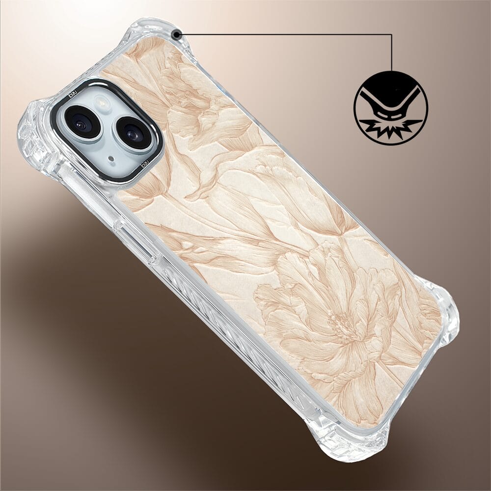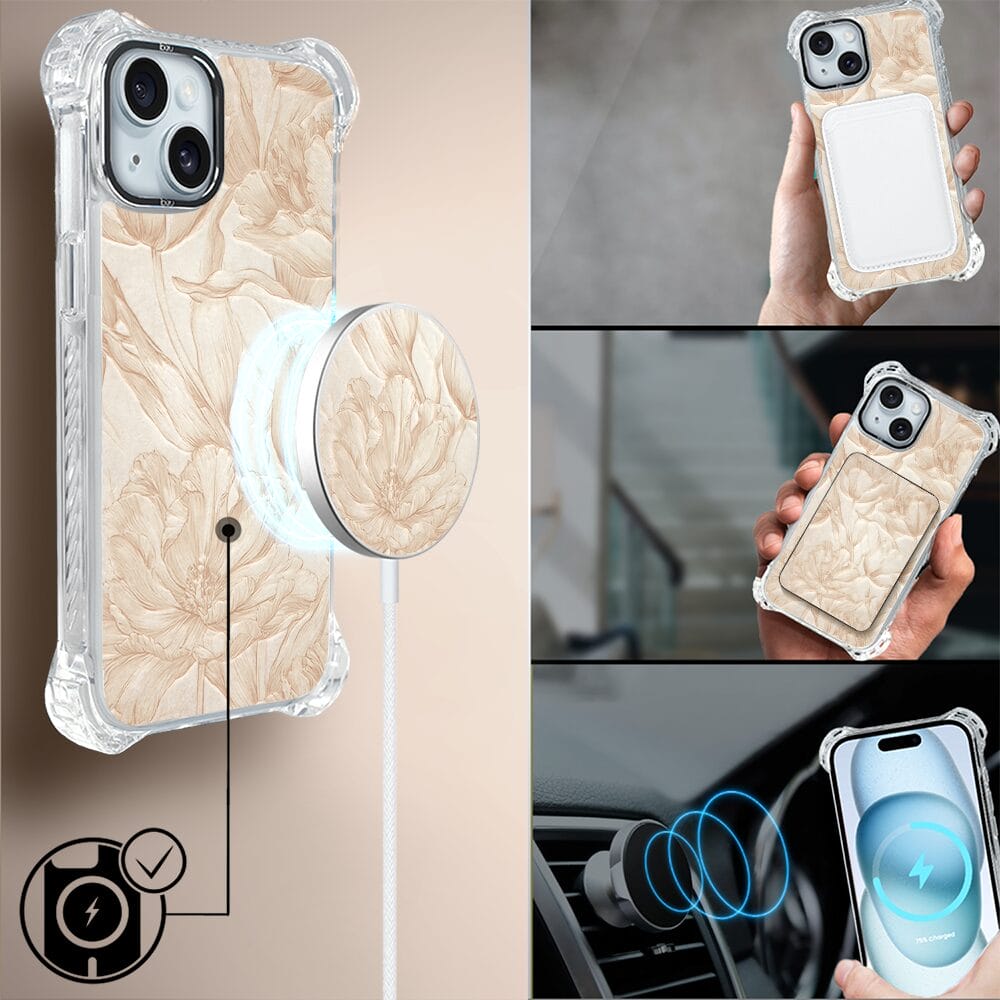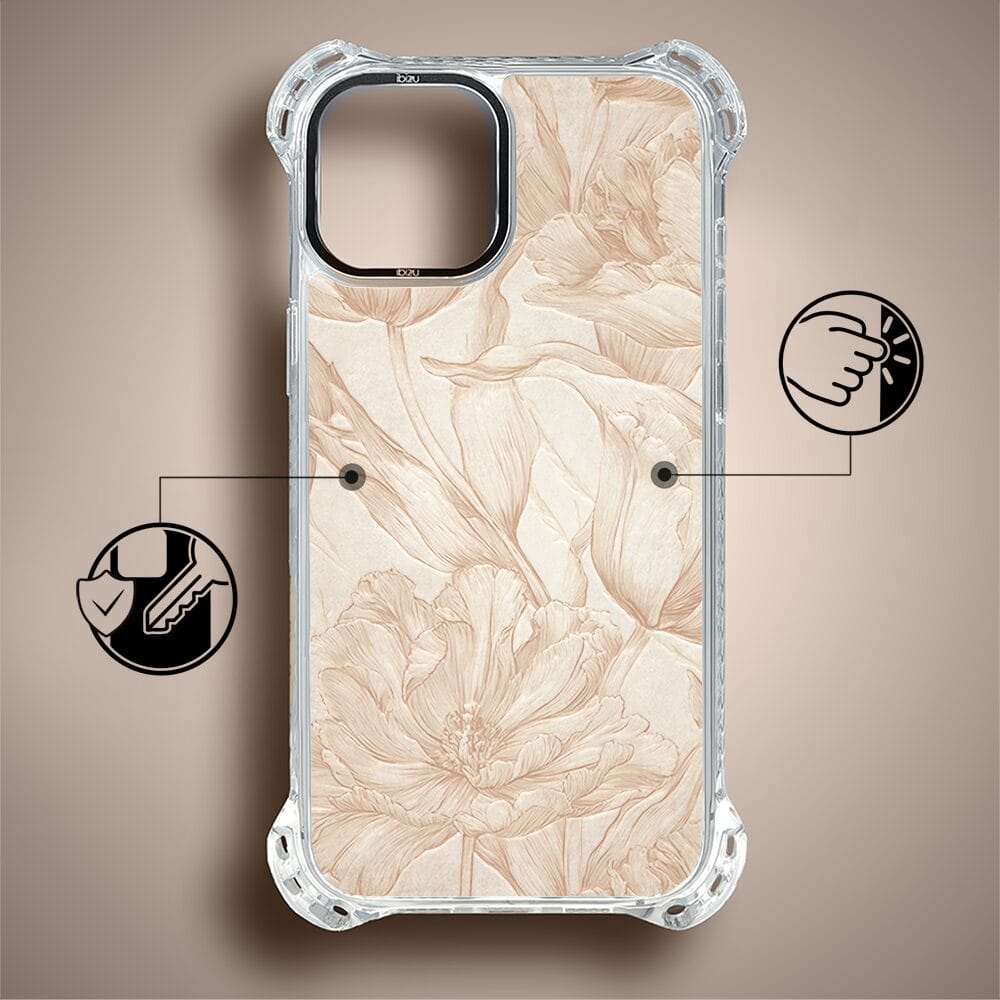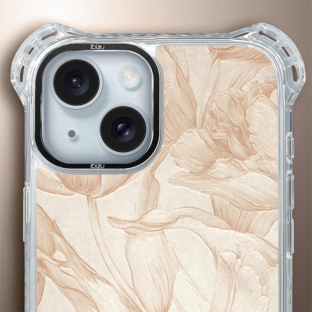 Etui do iPhone 15 IBIZU DropGuard Ultra z MagSafe, Relief Garden, Botaniczny biskwit