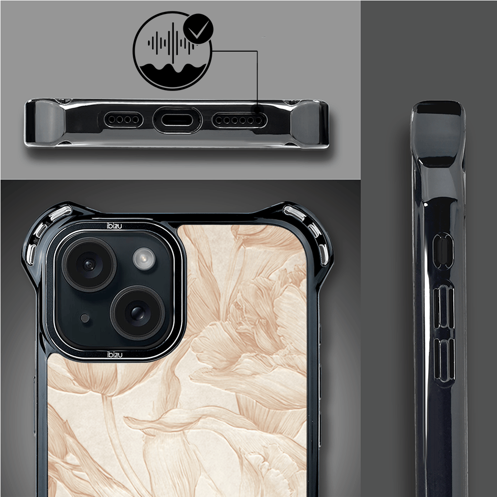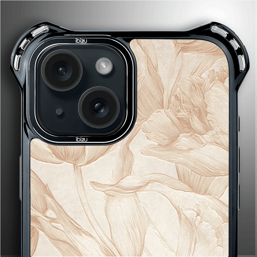 Etui do iPhone 15 IBIZU DropGuard Ultra z MagSafe, Relief Garden, Botaniczny biskwit