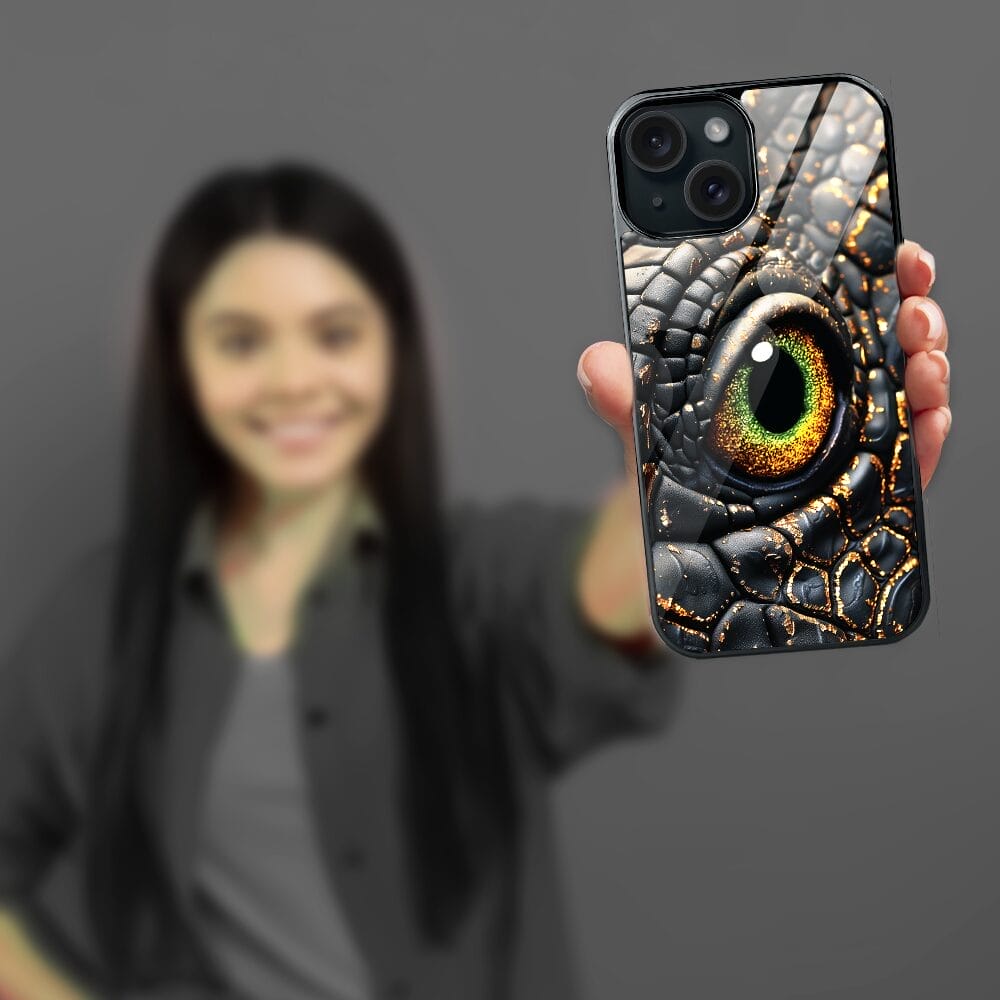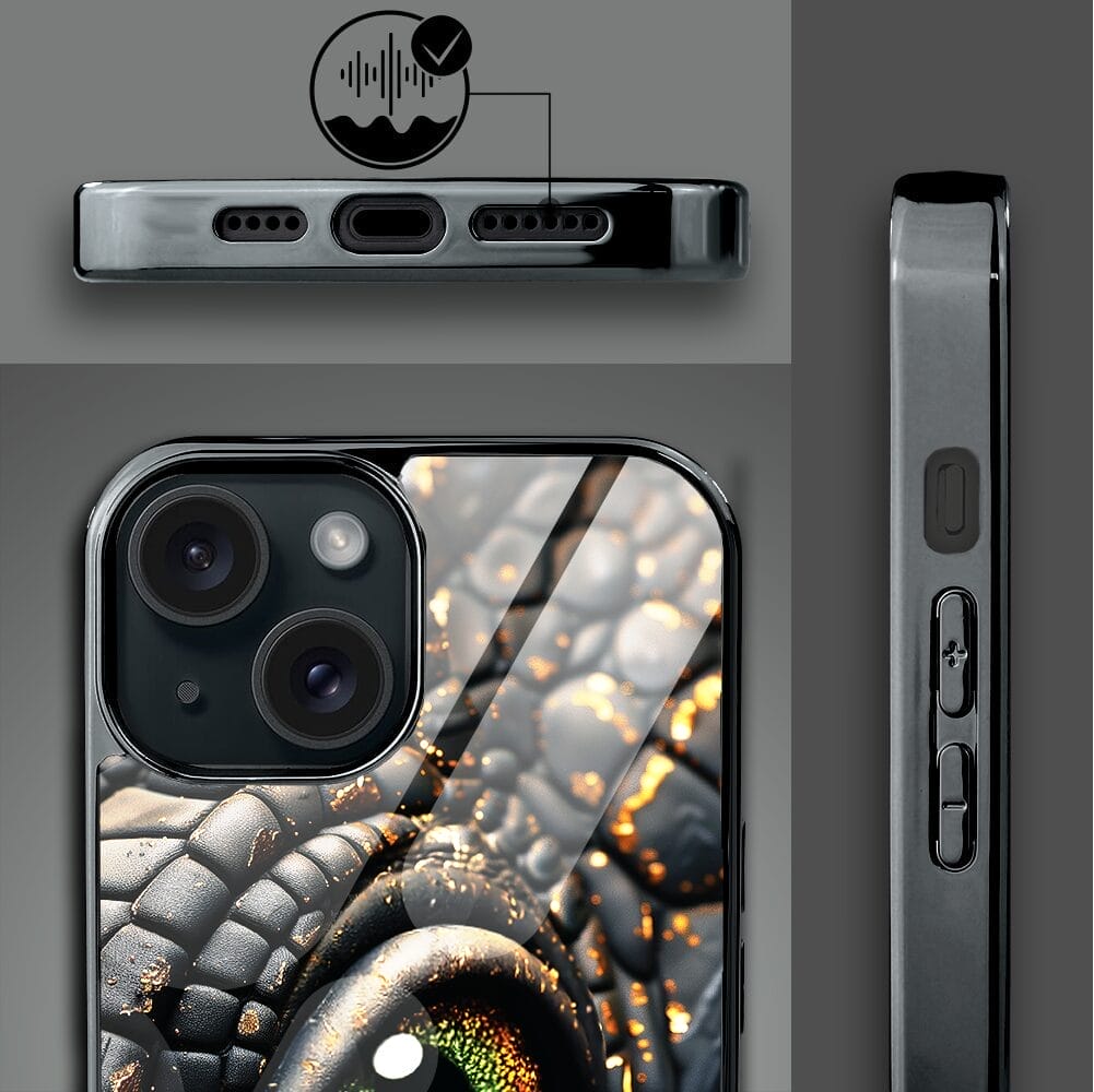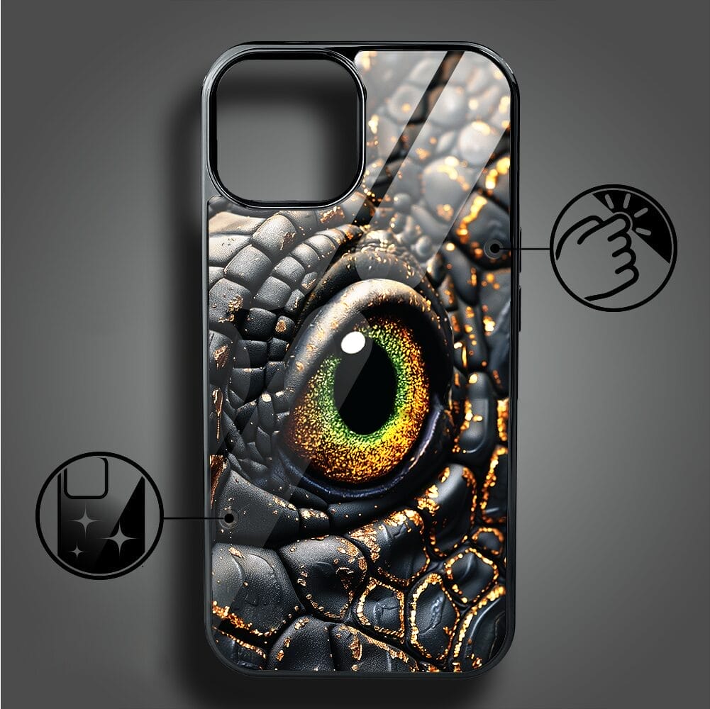 Etui do iPhone 15 IBIZU Elite Glass, szklany tył, Magia Azji amber dragon, czarny chrom