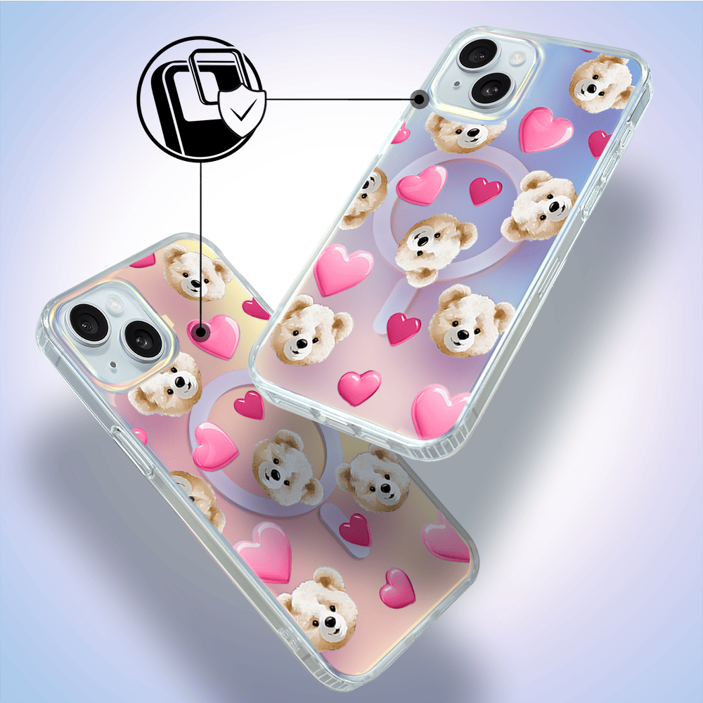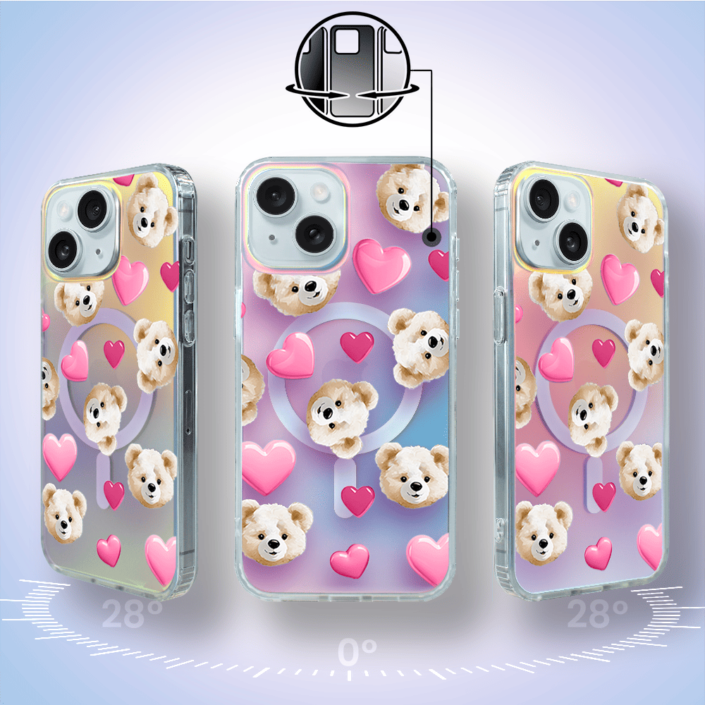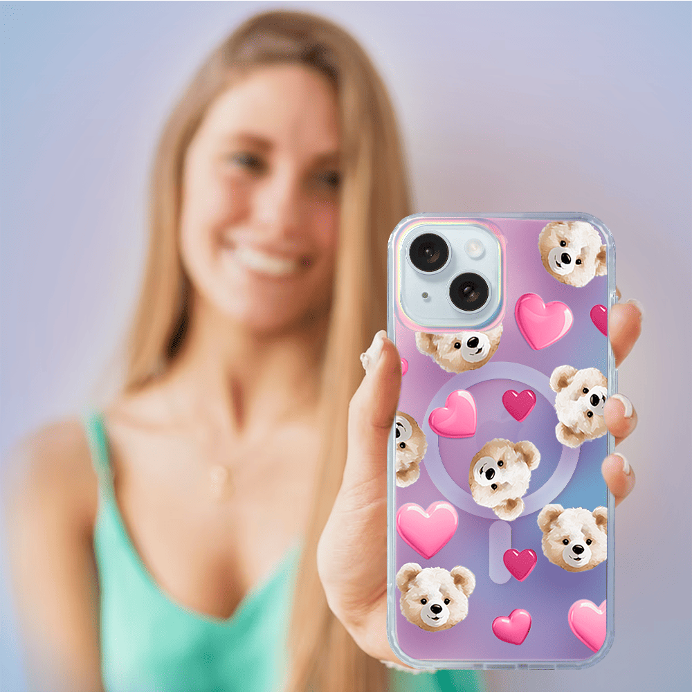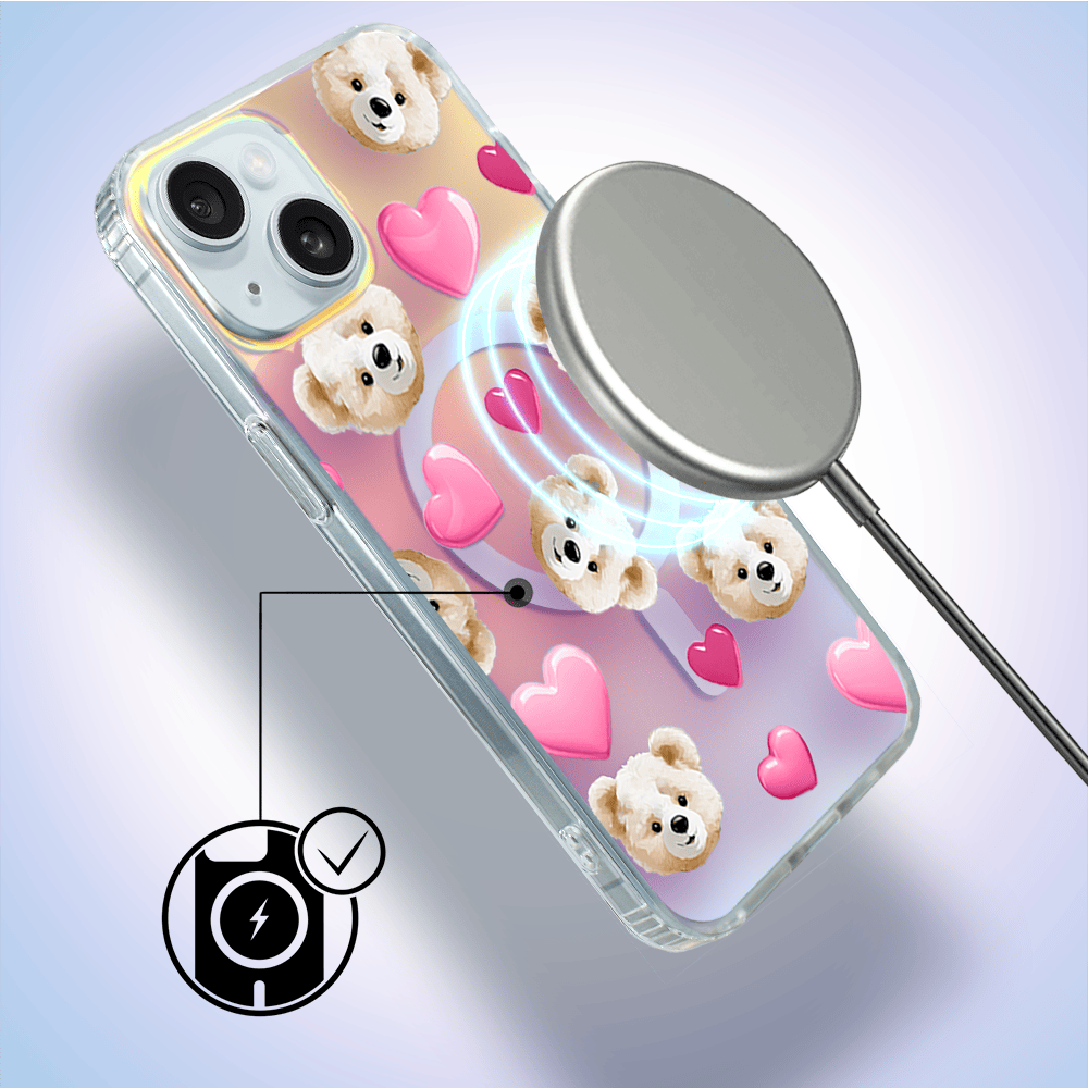 Etui do iPhone 15 Plus IBIZU California Sunset z MagSafe, zmieniające kolor, Love Mood, miś i serduszka