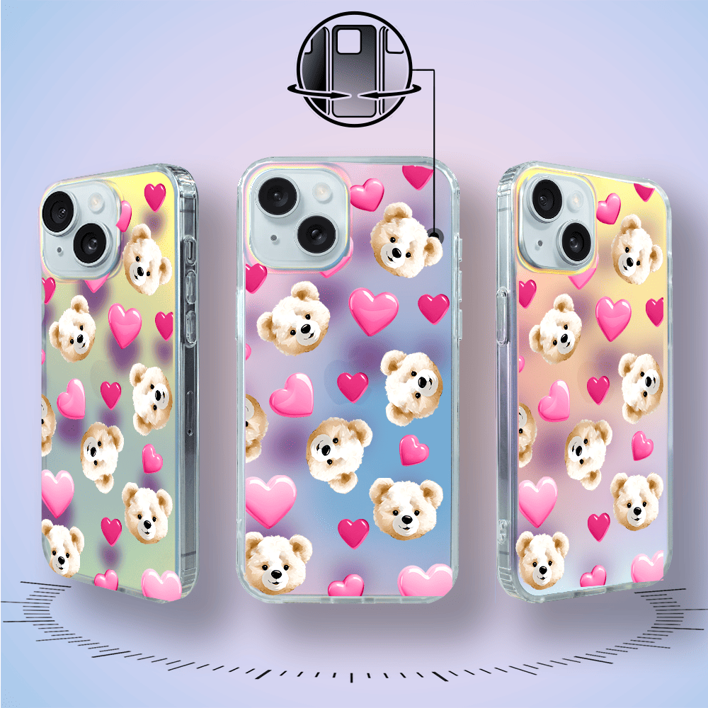 Etui do iPhone 15 Plus IBIZU California Sunset zmieniające kolor, Love Mood, miś i serduszka