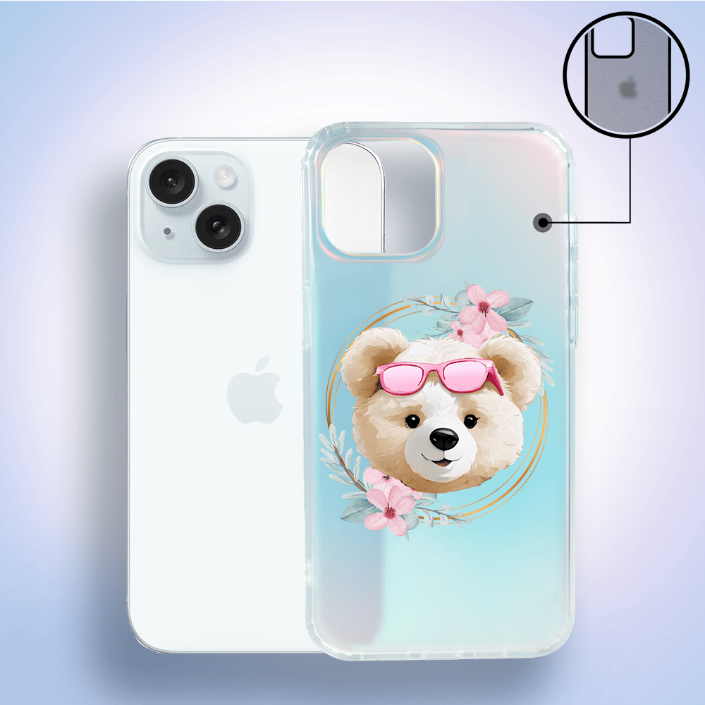 Etui do iPhone 15 Plus IBIZU California Sunset, zmieniające kolor, Flower Queen, miś z kwiatami