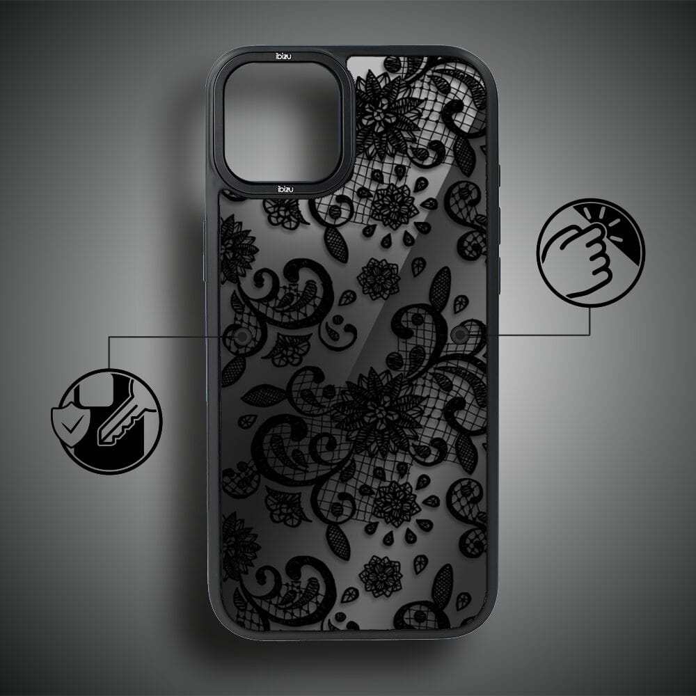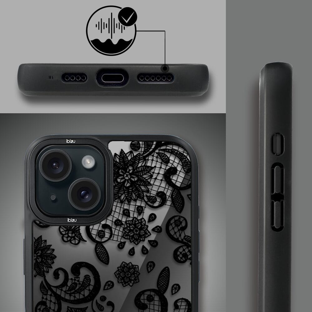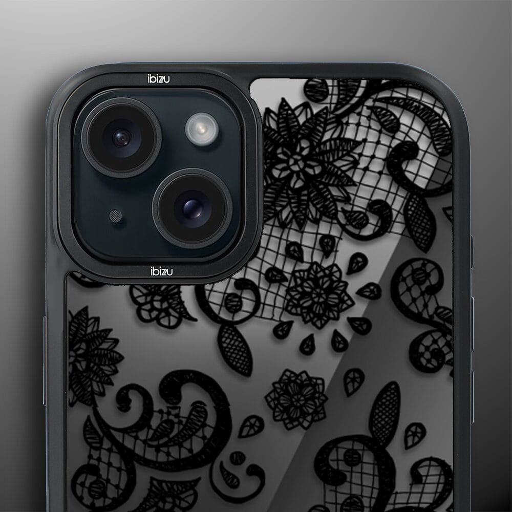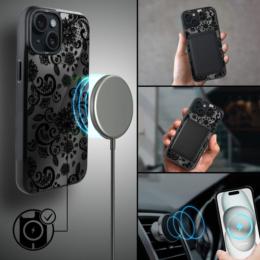 Etui do iPhone 15 Plus IBIZU DropGuard Matt z MagSafe, Midnight Mirror, Koronkowa czerń