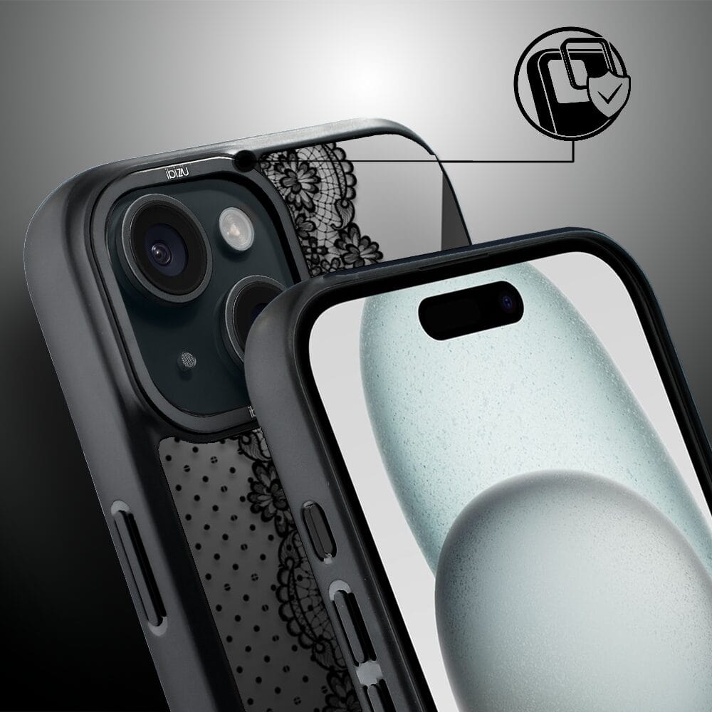 Etui do iPhone 15 Plus IBIZU DropGuard Matt z MagSafe, Midnight, Ornamentowa koronka