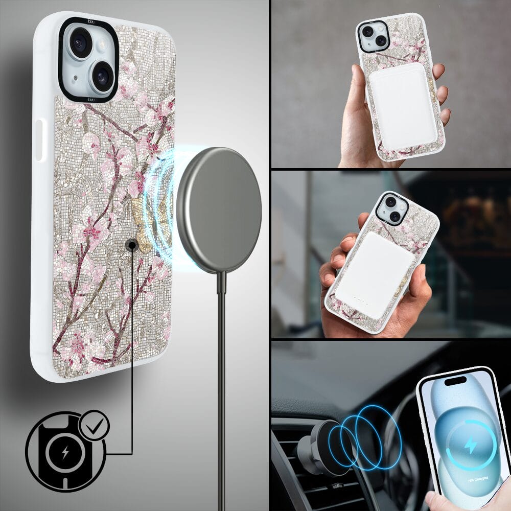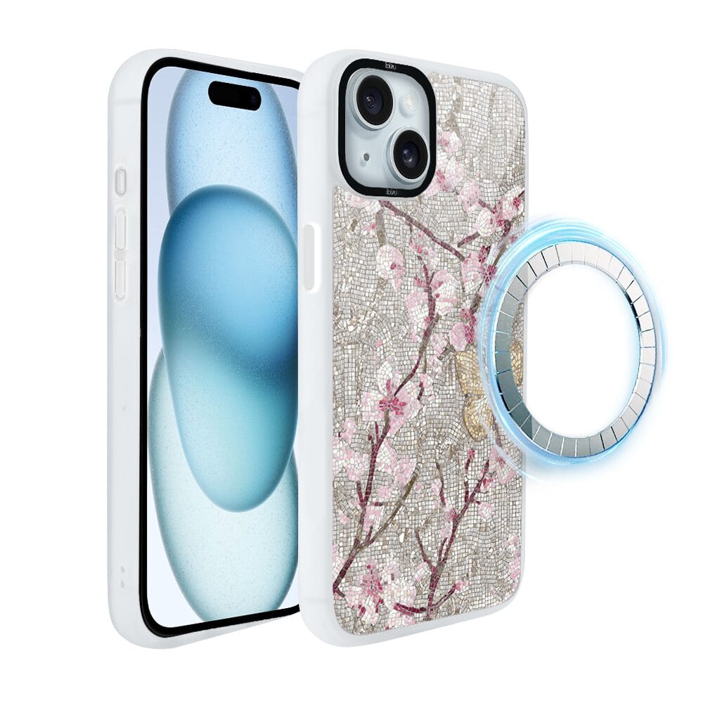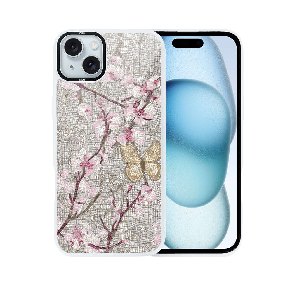 Etui do iPhone 15 Plus IBIZU DropGuard Matt z MagSafe, Modern Classics, Mozaika kwitnącej wiśni