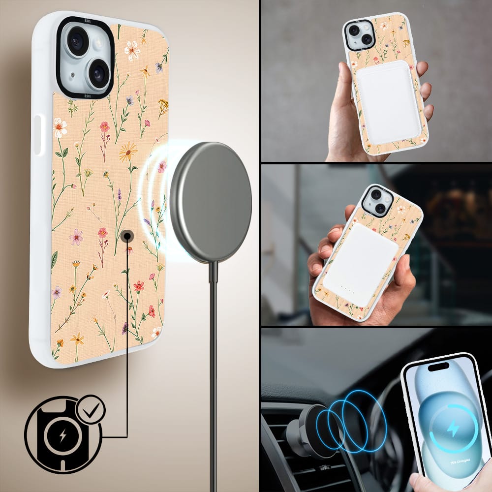 Etui do iPhone 15 Plus IBIZU DropGuard Matt z MagSafe, Pastel Bloom, Koralowa łąka