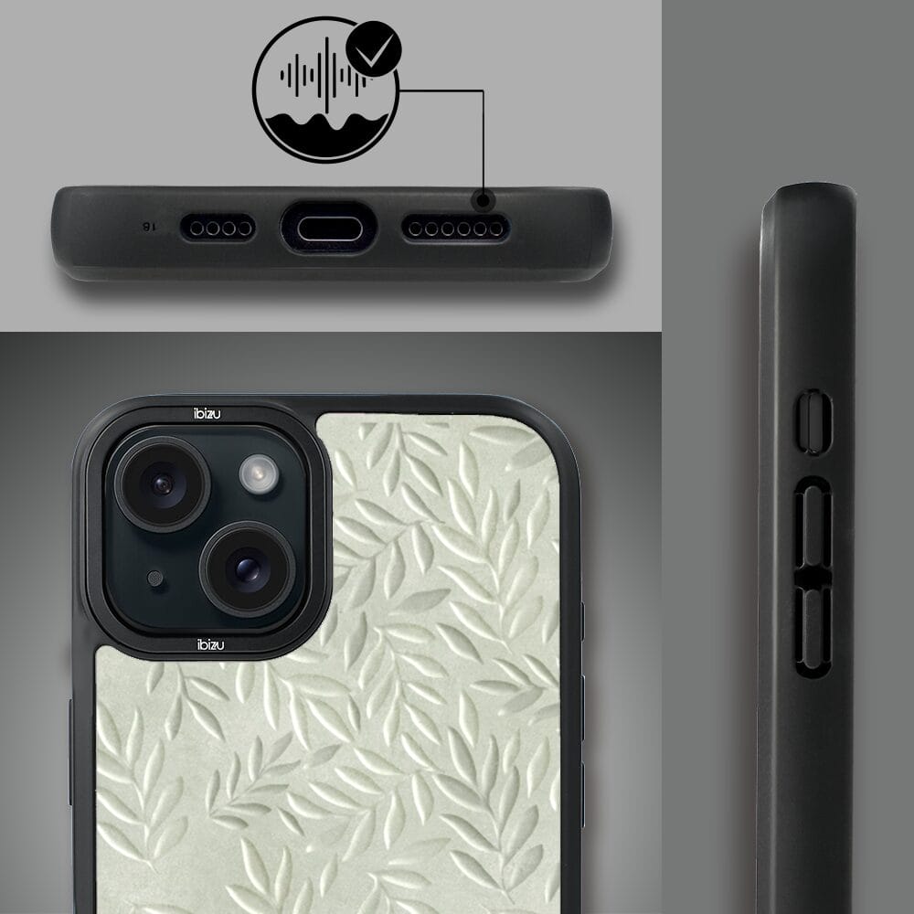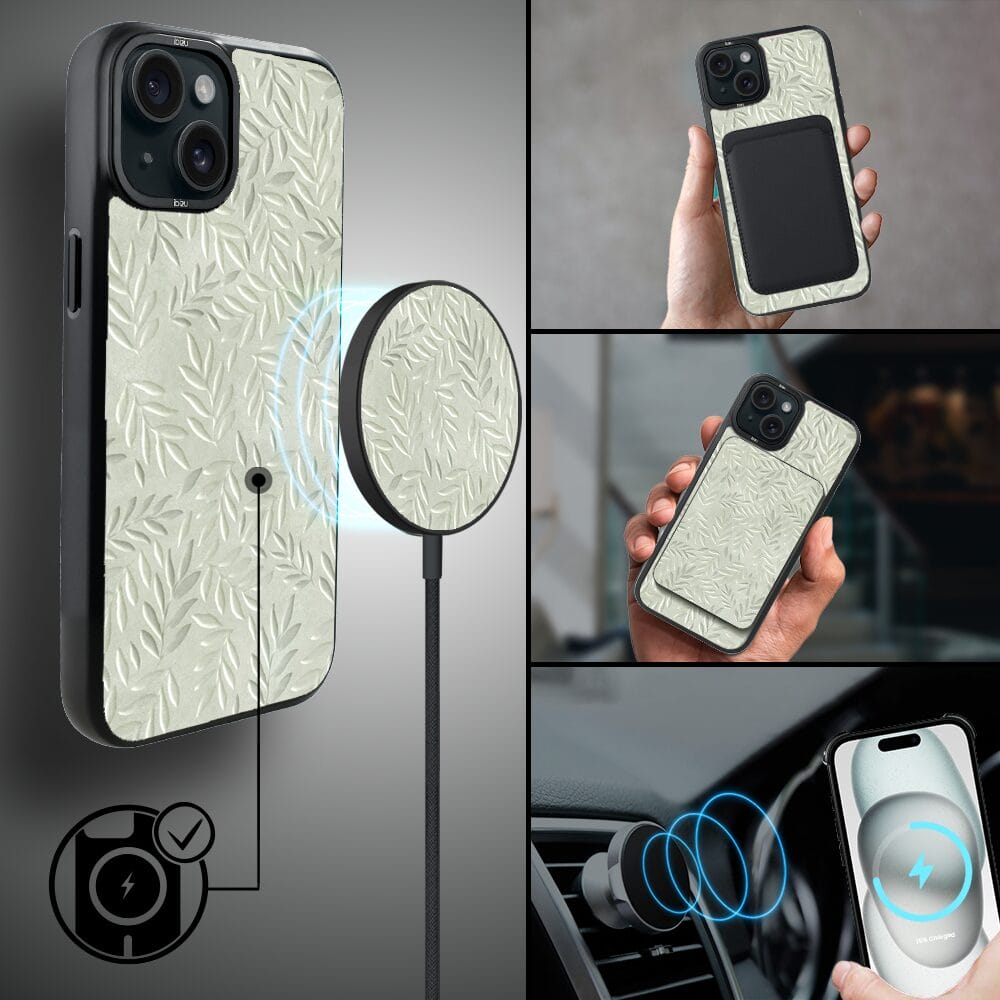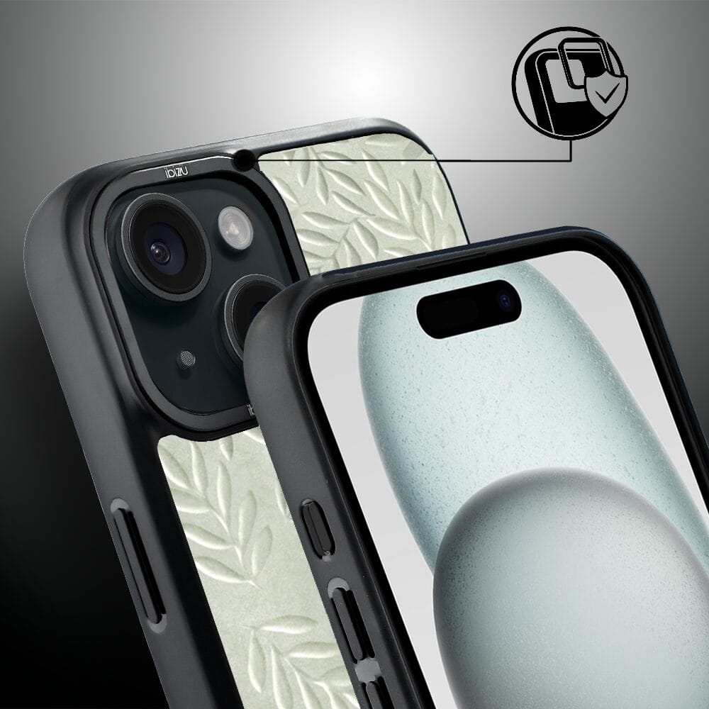 Etui do iPhone 15 Plus IBIZU DropGuard Matt z MagSafe, Relief Garden, Ślad oliwki