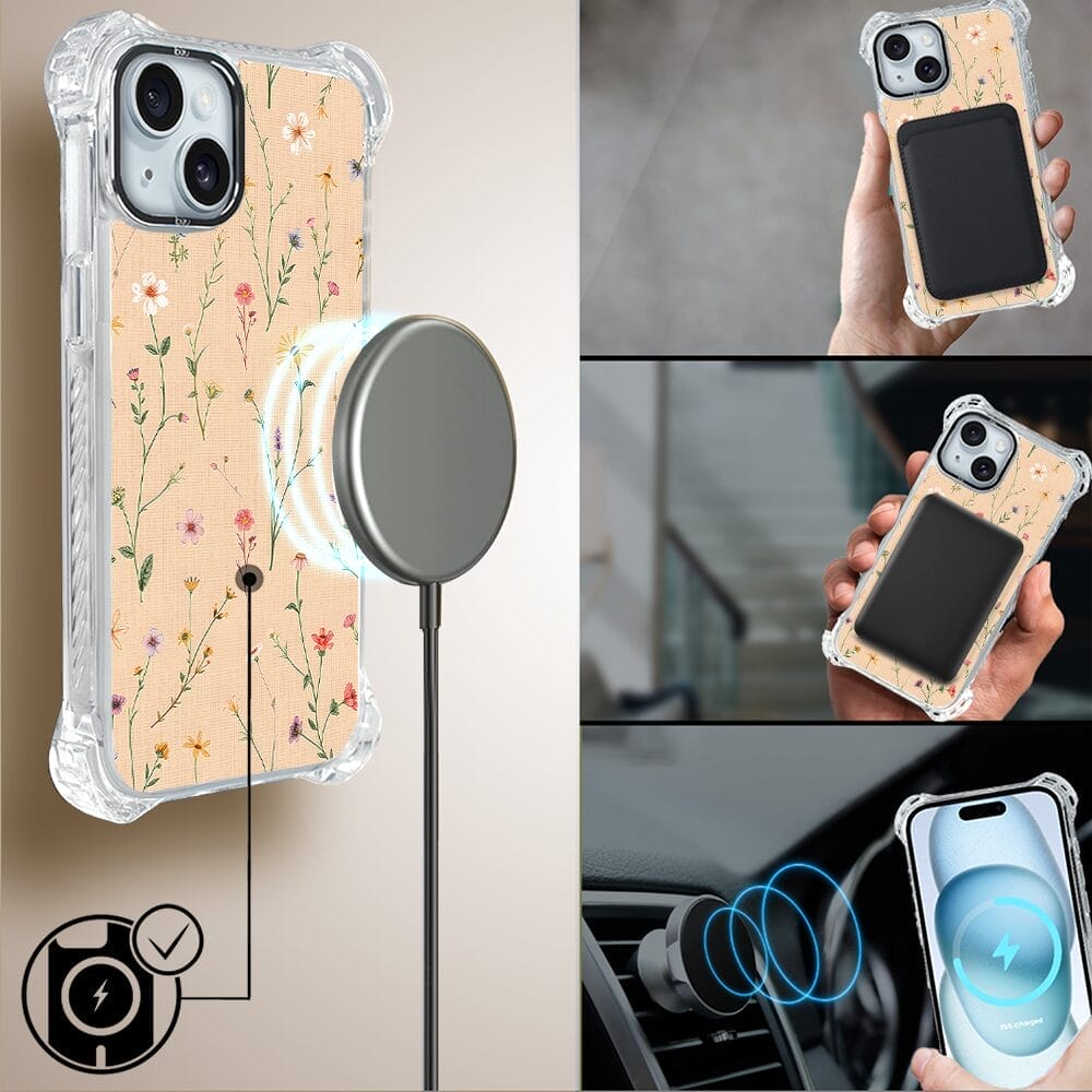 Etui do iPhone 15 Plus IBIZU DropGuard Ultra z MagSafe, Pastel Bloom, Koralowa łąka