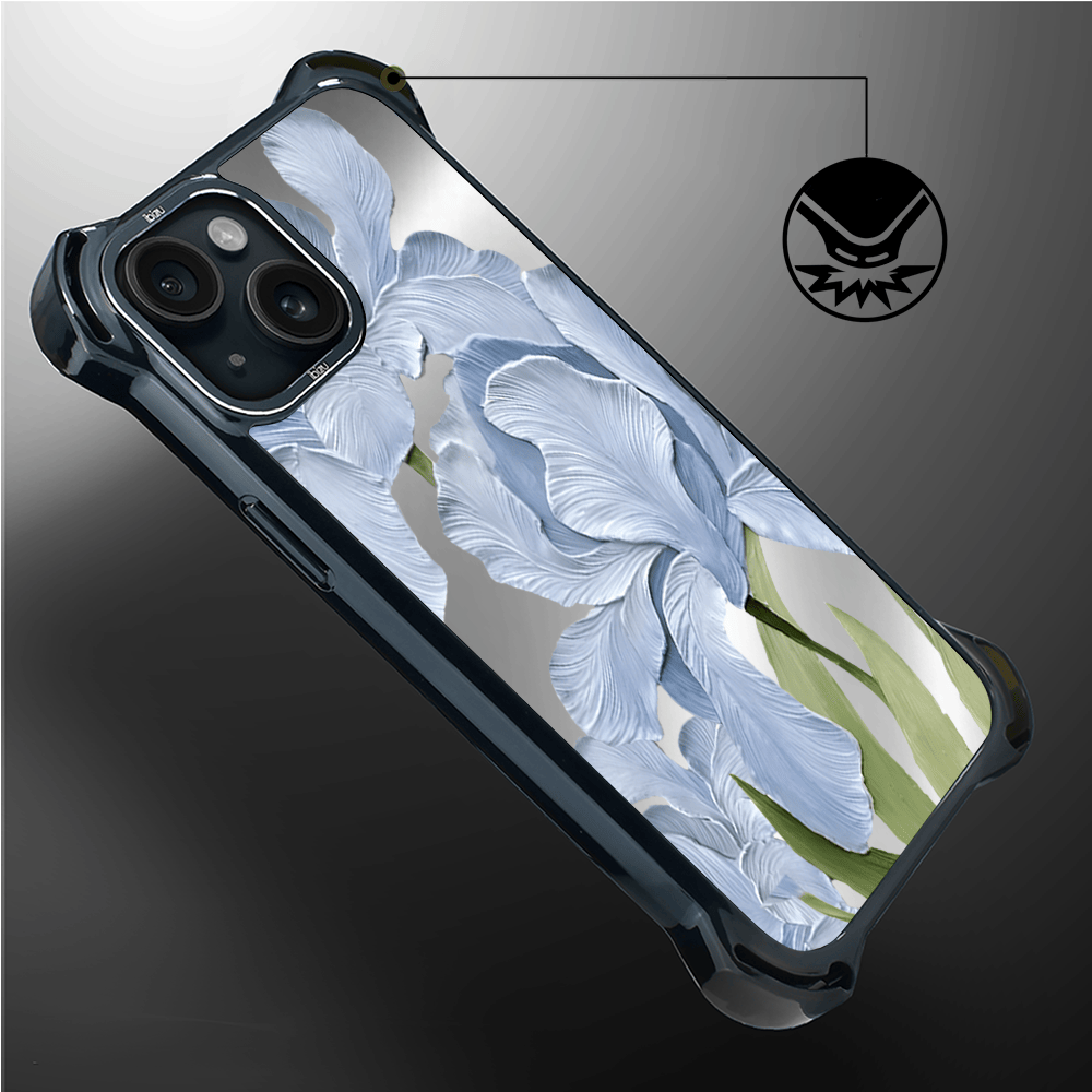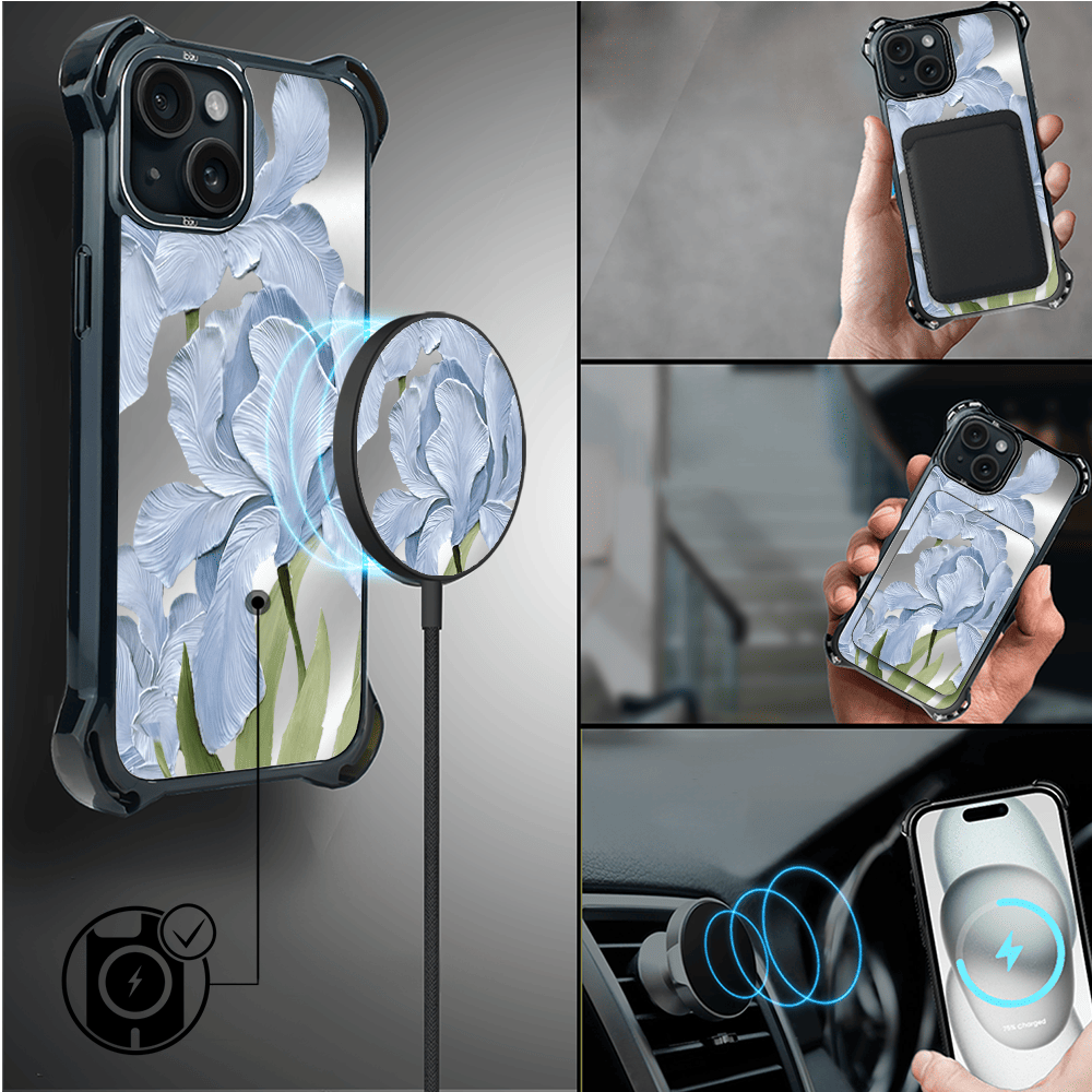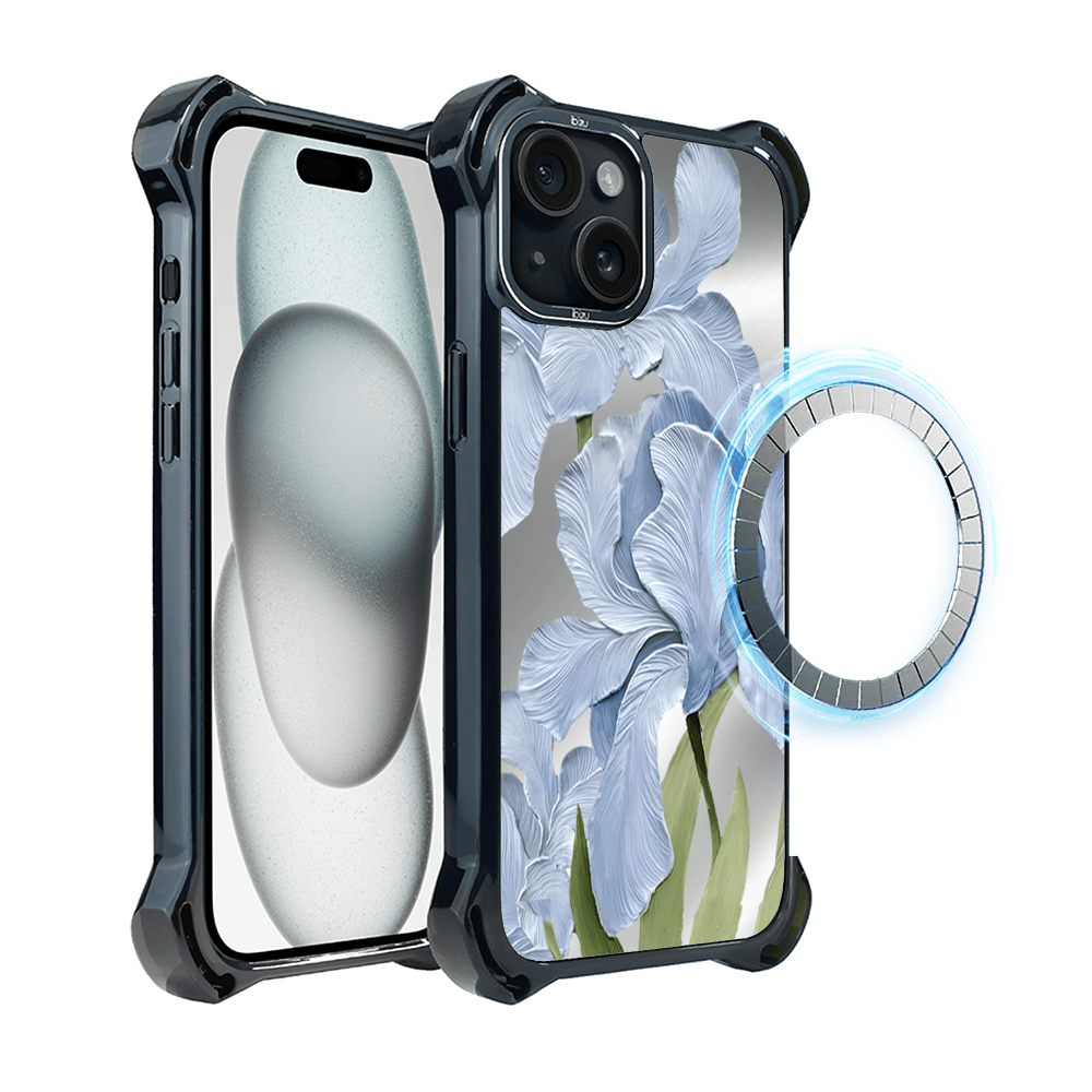 Etui do iPhone 15 Plus IBIZU DropGuard Ultra z MagSafe, Relief Garden, Błękitny irys