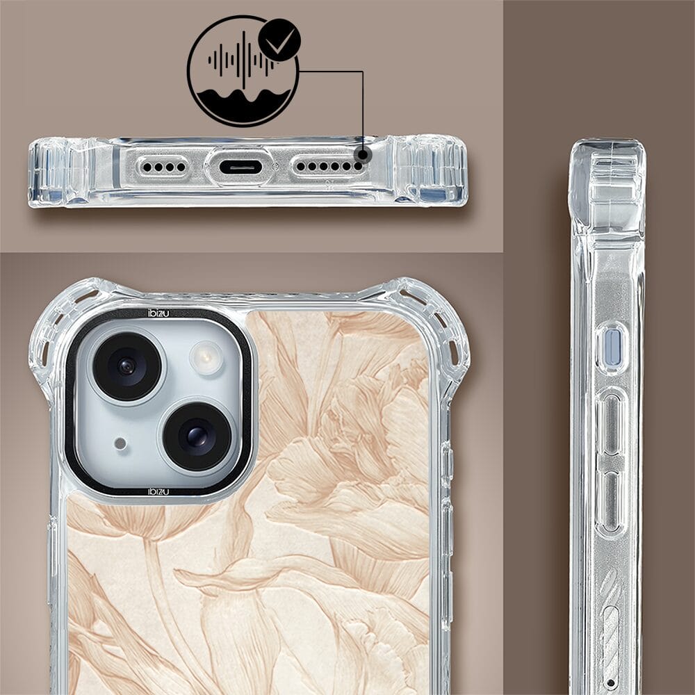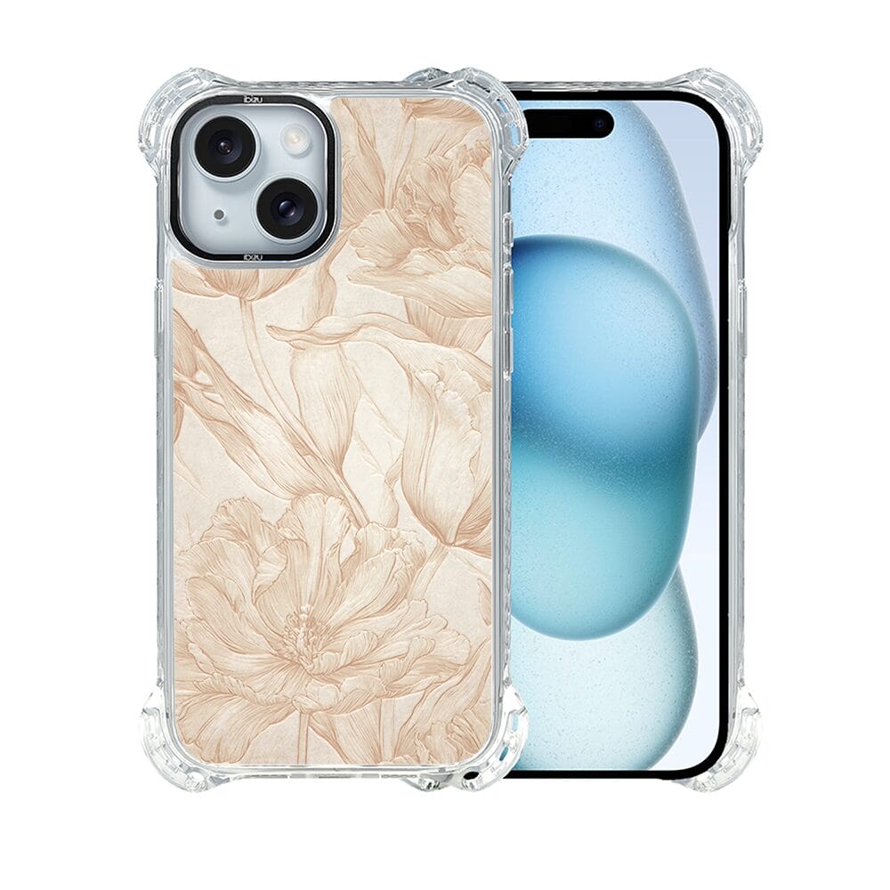 Etui do iPhone 15 Plus IBIZU DropGuard Ultra z MagSafe, Relief Garden, Botaniczny biskwit