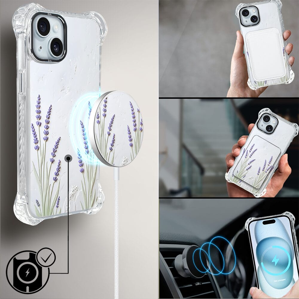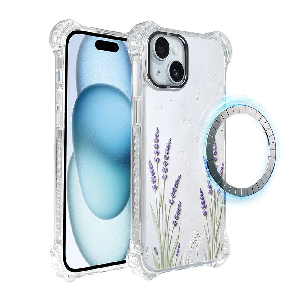 Etui do iPhone 15 Plus IBIZU DropGuard Ultra z MagSafe, Relief Garden, Prowansalska lawenda