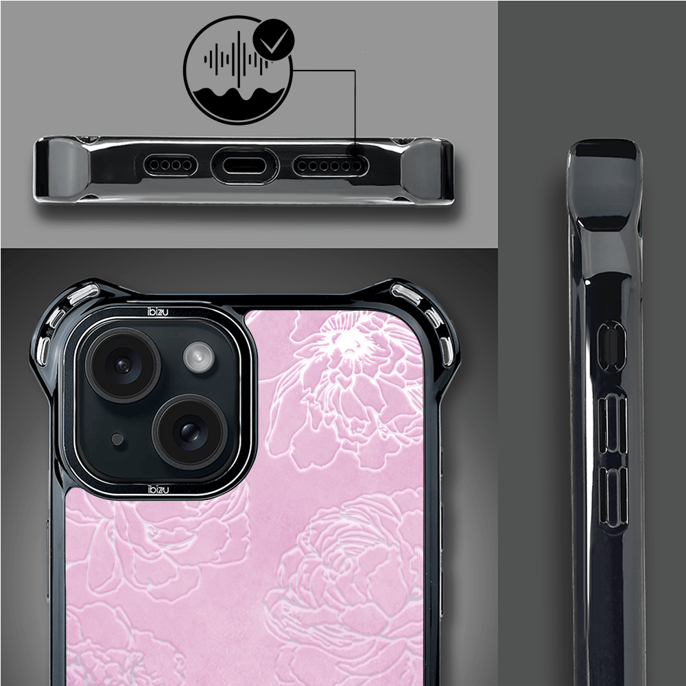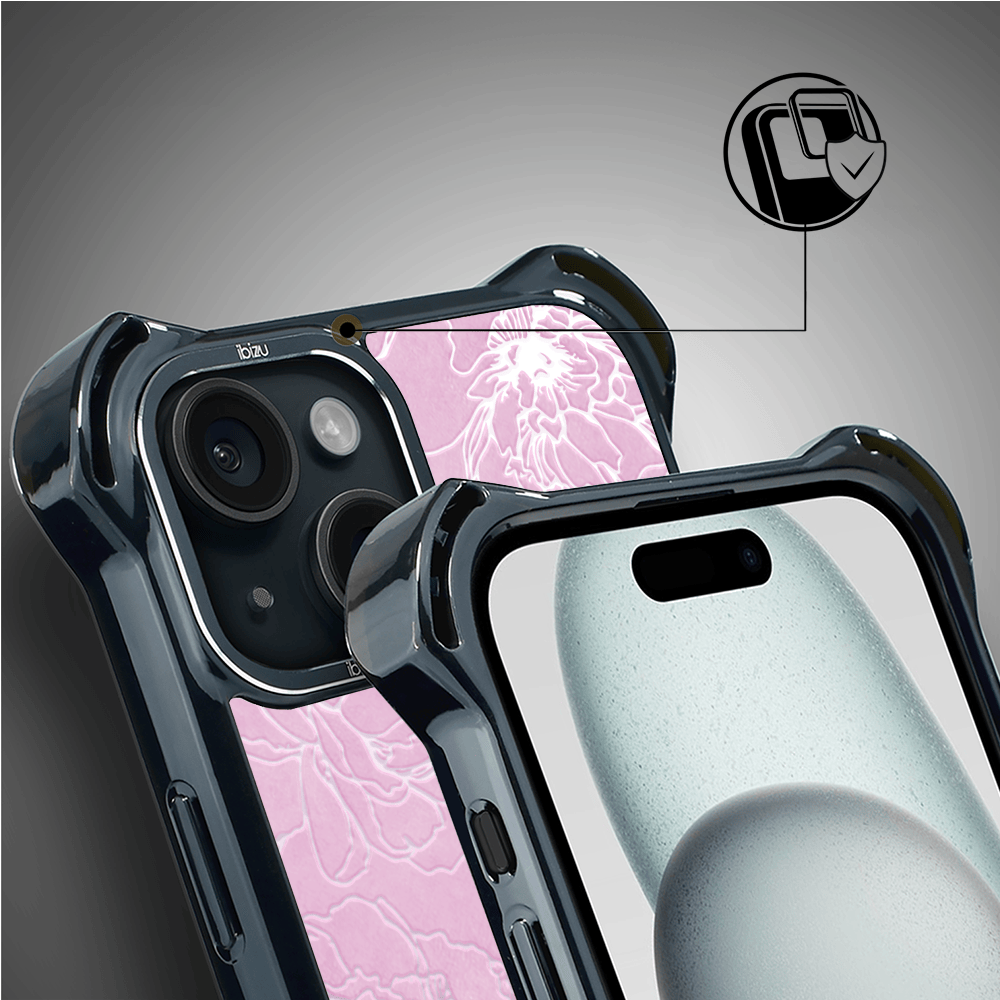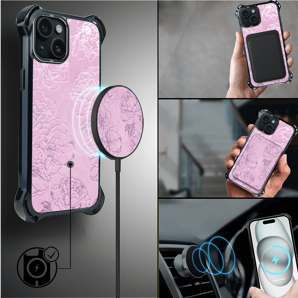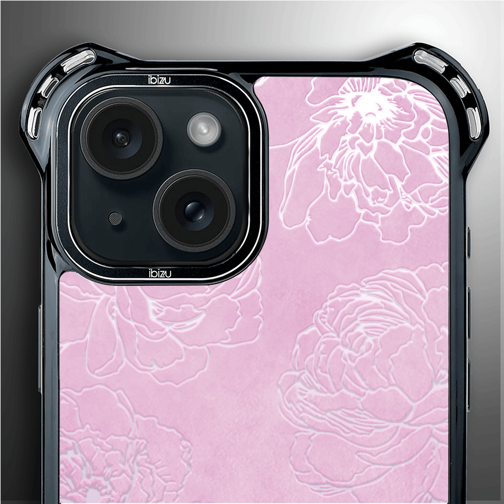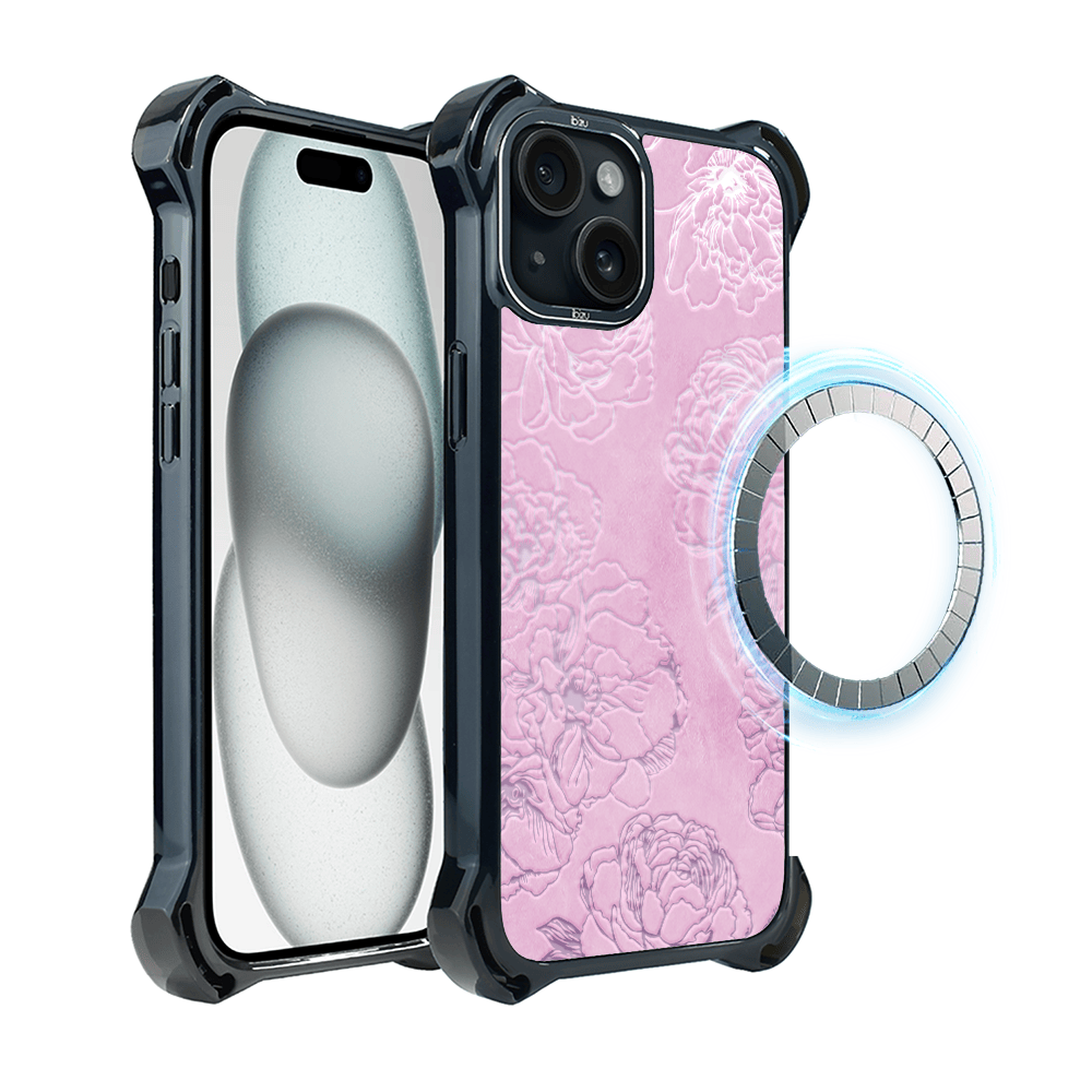 Etui do iPhone 15 Plus IBIZU DropGuard Ultra z MagSafe, Relief Garden, Różowe piwonie