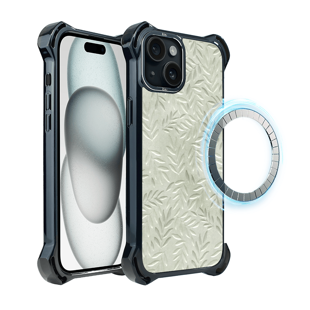 Etui do iPhone 15 Plus IBIZU DropGuard Ultra z MagSafe, Relief Garden, Ślad oliwki