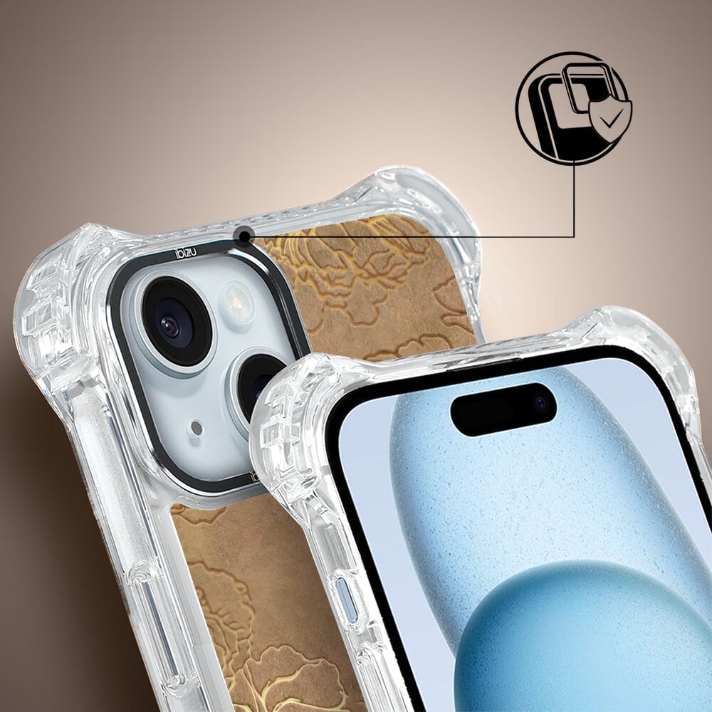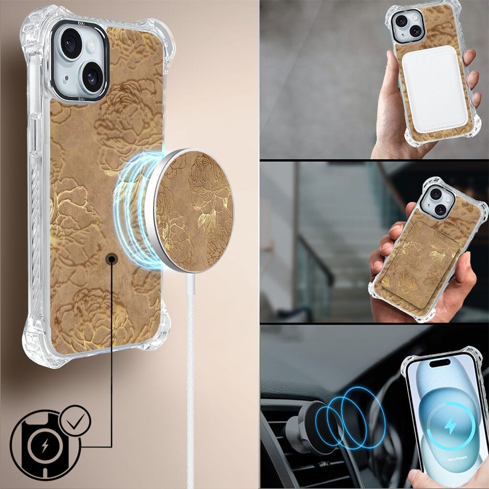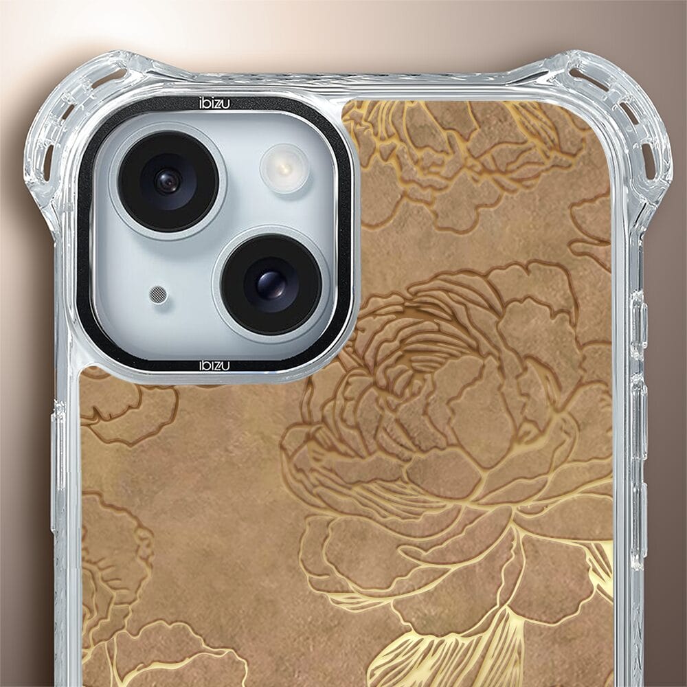 Etui do iPhone 15 Plus IBIZU DropGuard Ultra z MagSafe, Relief Garden, Złote piwonie
